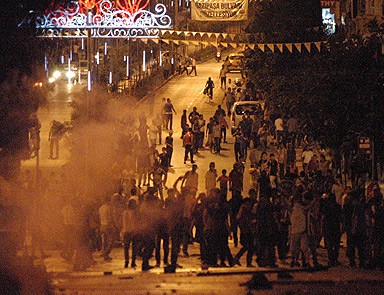 Ardından tekrar Kennedy Caddesi üzerinde toplanan grup sloganlar eşliğinde polise taş ve yabancı maddeler attı. Çevik kuvvet ekiplerinin karşılığı ise sert oldu.