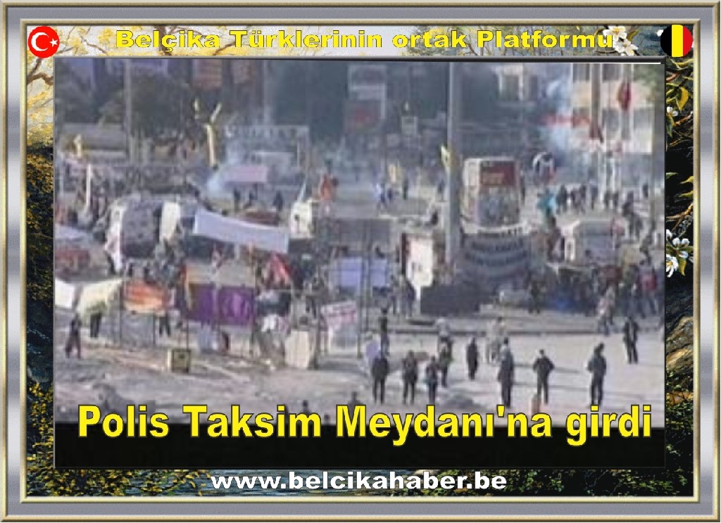 Polis, TOMA ve Akrep işliğinde Taksim Meydanı'na girdi. Polis sürekli olarak "Hiçbir şekilde Gezi Parkına Müdahale Yapılmayacak. Amacımız anıt çevresine düzenleme yapmaktır" şeklinde anons yapıyor.