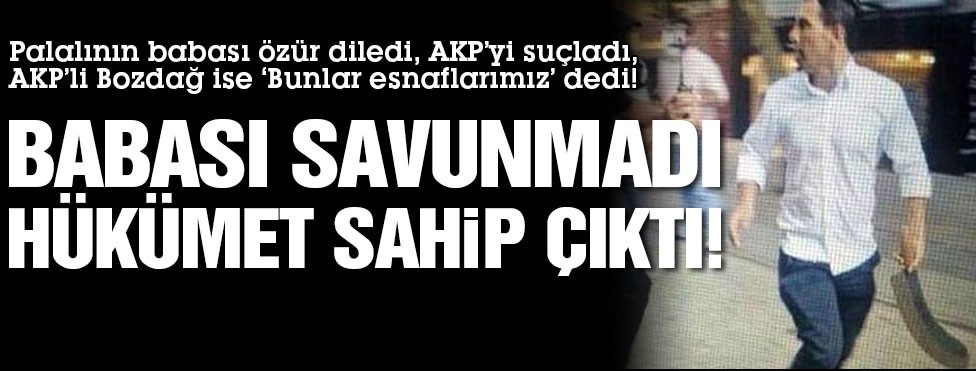 Palalı saldırganın babası 'Türk ve Kürt halkından özür dilerim. Yaşanmamalıydı' dedi. Başbakan yardımcısı Bozdağ ise "Esnaf tepkisi" diye şahısa sahip çıktı.