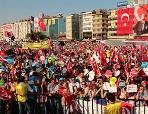 Kadıköy Rıhtım'da otobüs duraklarının olduğu alanda düzenlenen mitinge yüzbinler katıldı.