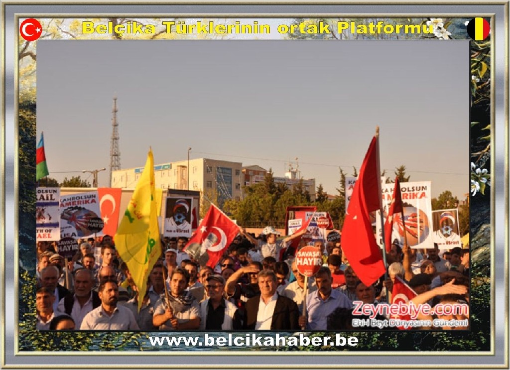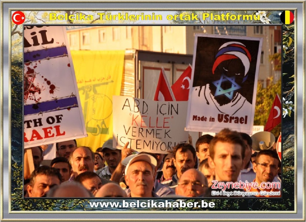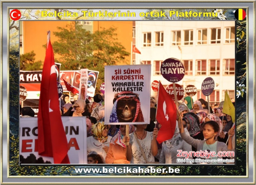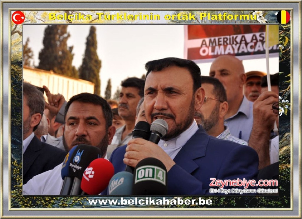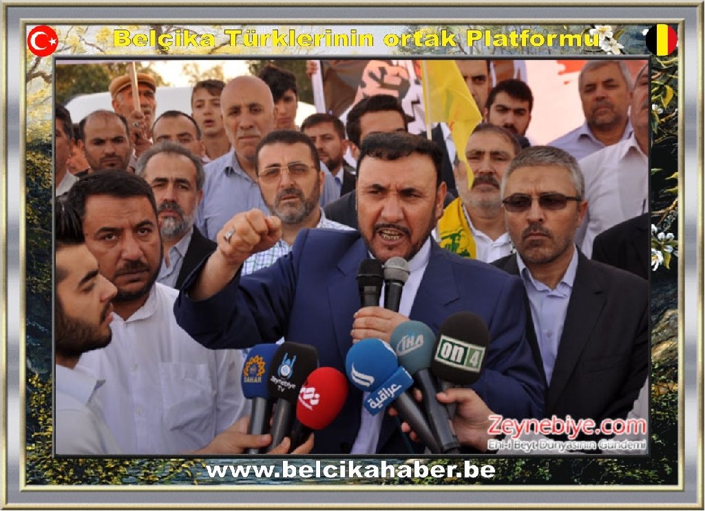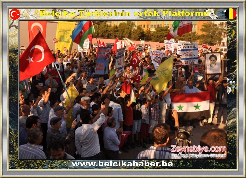 "Kahrolsun Amerika, Kahrolsun İsrail" "Unutma Türkiye, Kardeşindir Suriye" "Amerikan Askeri Olmayacağız" "Şii Sünni Kardeştir, Vahabiler Kalleştir" "Mehmetçik İsrail'e Kalkan Olamaz" "NATO'cu Mücahit İstemiyoruz" "Hepimiz Zeyneb'e Abbas Oluruz" sloganlarının atıldığı gösteride Zeynebiye Medya Sorumlularından Kasım Alcan bir basın bildirisi okudu: