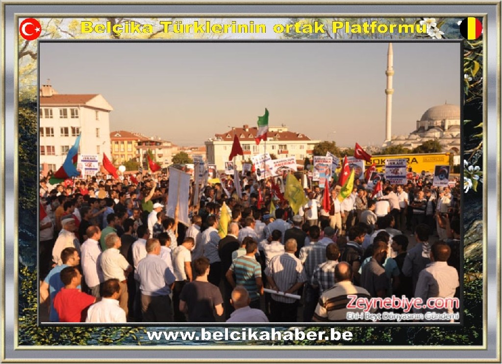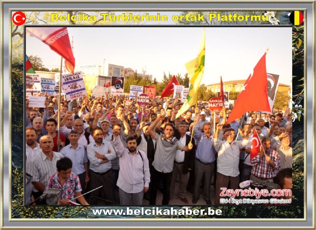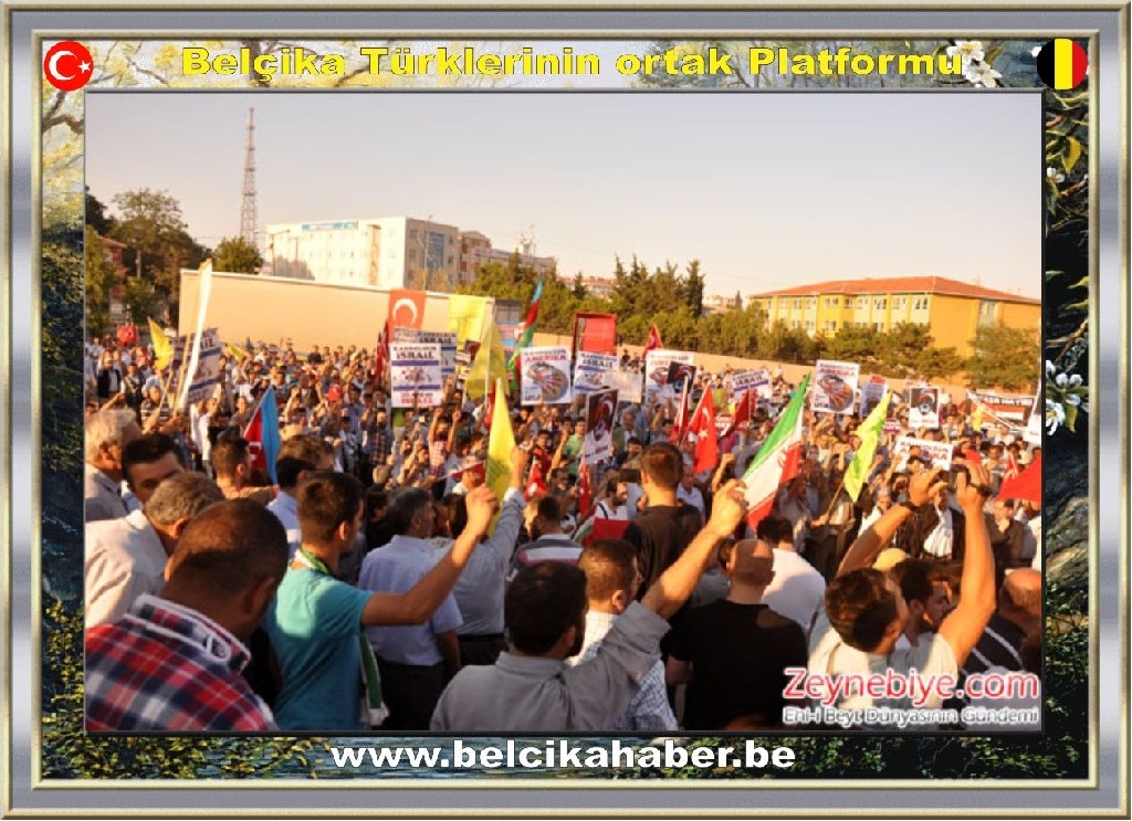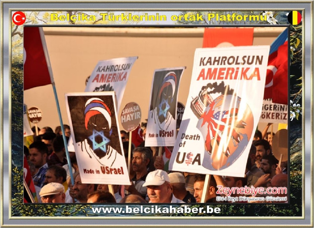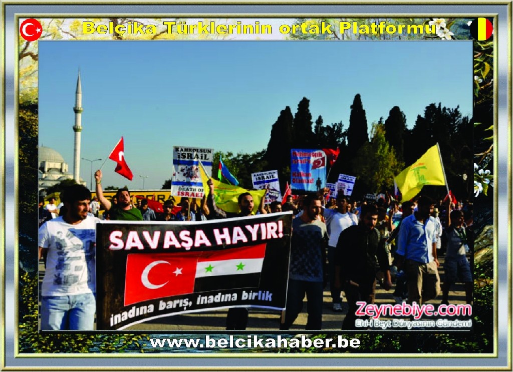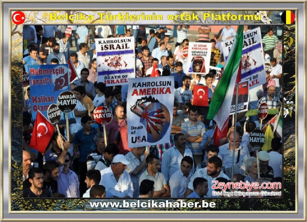 "Kahrolsun Amerika, Kahrolsun İsrail" "Unutma Türkiye, Kardeşindir Suriye" "Amerikan Askeri Olmayacağız" "Şii Sünni Kardeştir, Vahabiler Kalleştir" "Mehmetçik İsrail'e Kalkan Olamaz" "NATO'cu Mücahit İstemiyoruz" "Hepimiz Zeyneb'e Abbas Oluruz" sloganlarının atıldığı gösteride Zeynebiye Medya Sorumlularından Kasım Alcan bir basın bildirisi okudu:
