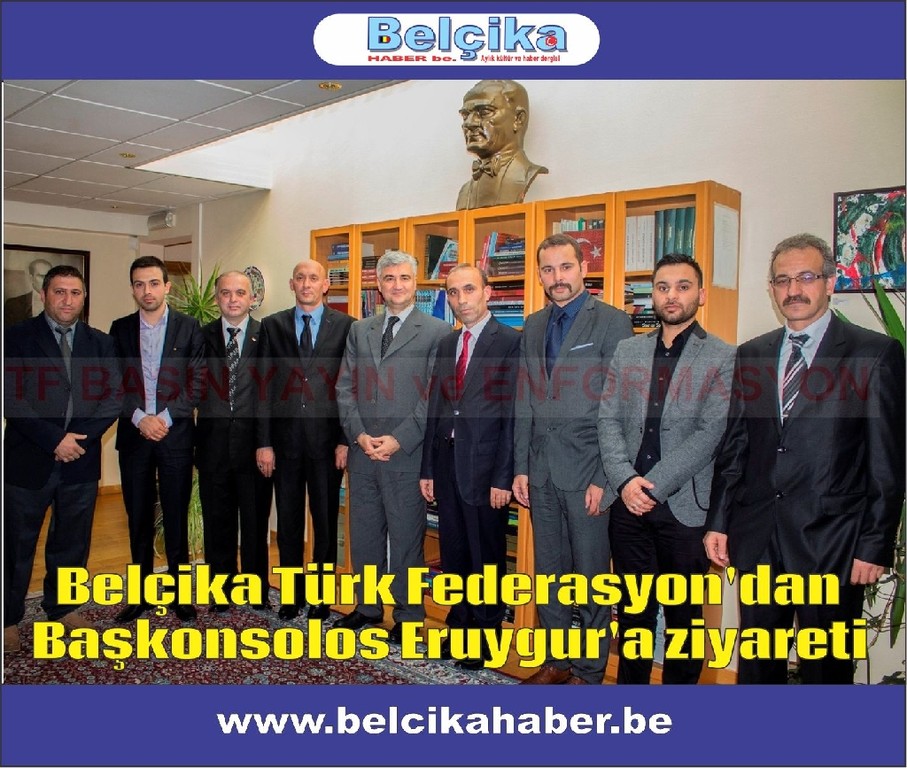 Belçika Türk Federasyon Genel Başkanı Ömer Zararsız ve belçika teşkilat temsilcileri Türkiye Cumhuriyeti Anvers Başkonsolosluğuna yeni atanan Başkonsolos Mustafa Kemalettin Eruygur'u makamında ziyaret ettiler.