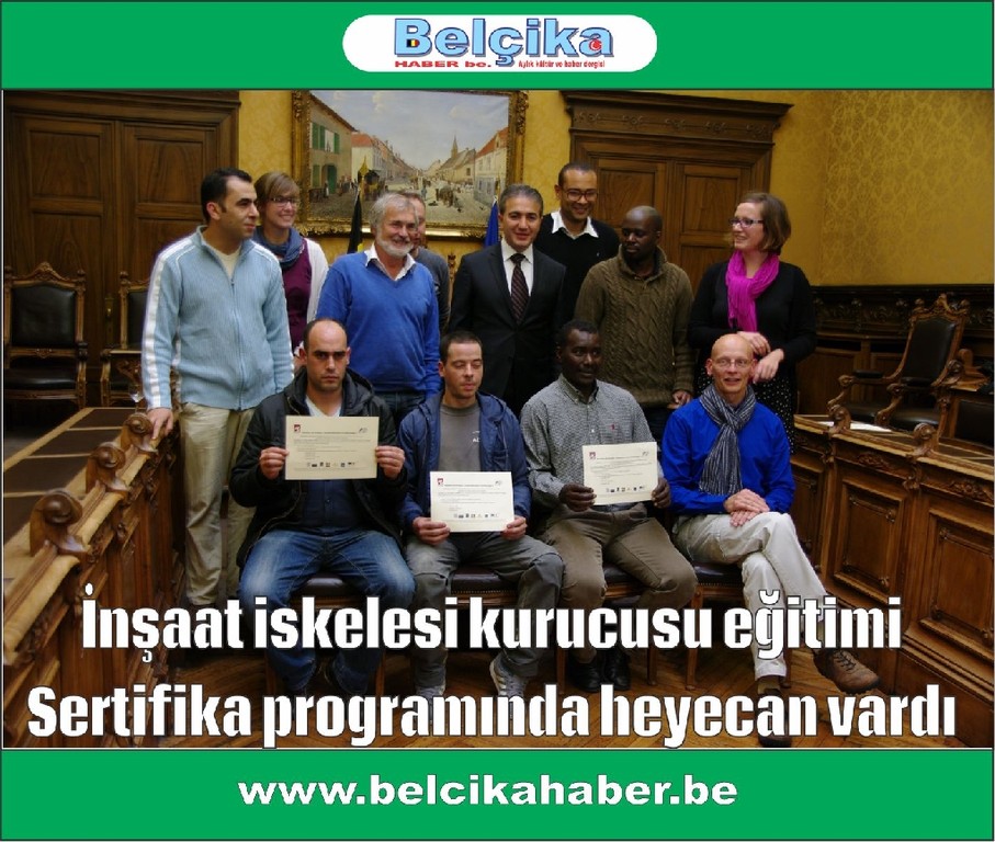 İnşaat iskelesi kurucusu eğitimi Sertifika programında heyecan vardı. Saint Josse Belediyesi bünyesinde gerçekleştirilen İnşaat sektöründe eğitim alan kursiyerler sertifikalarını Başkan Emir Kır'ın elinden aldılar.