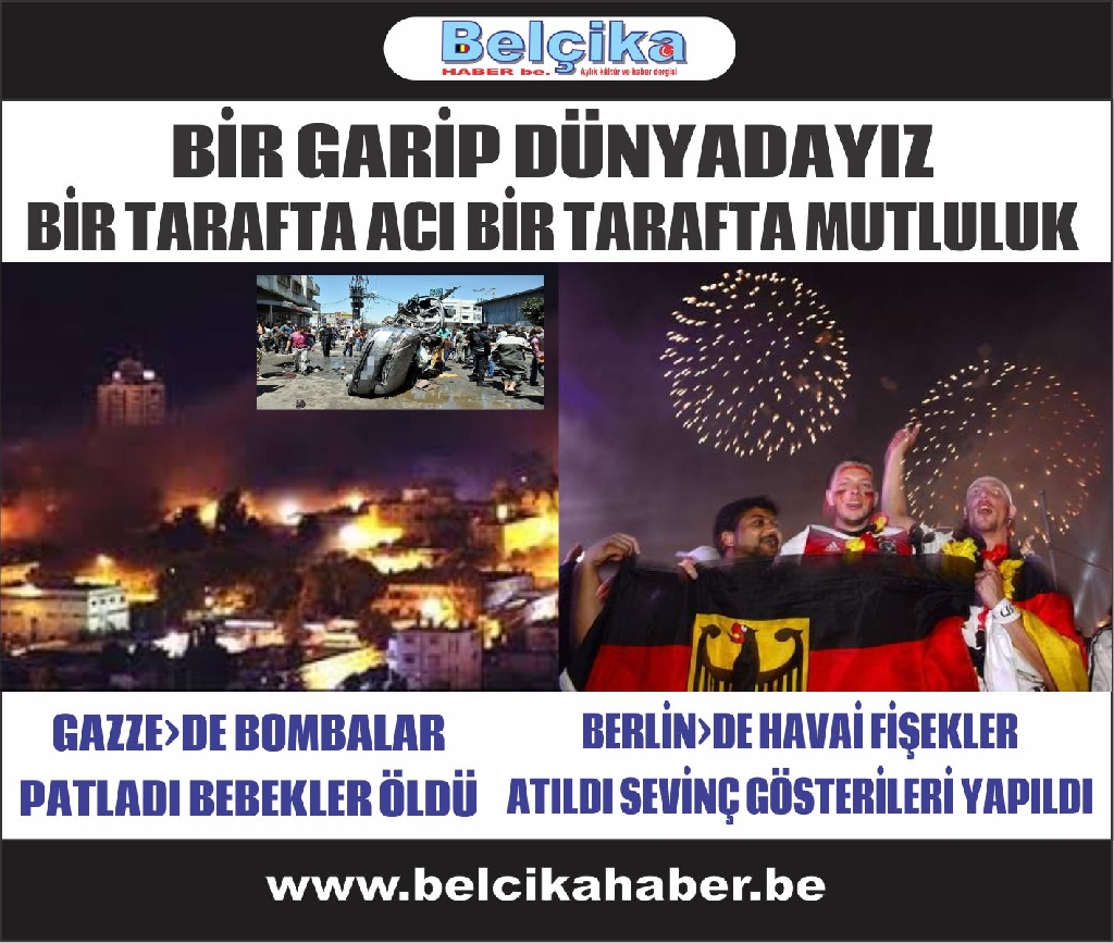 Diğer taraftan da Dünya kupası sevinciyle bombaları ve ölümleri görmezden gelen milyonların sevinç çığlıkları.