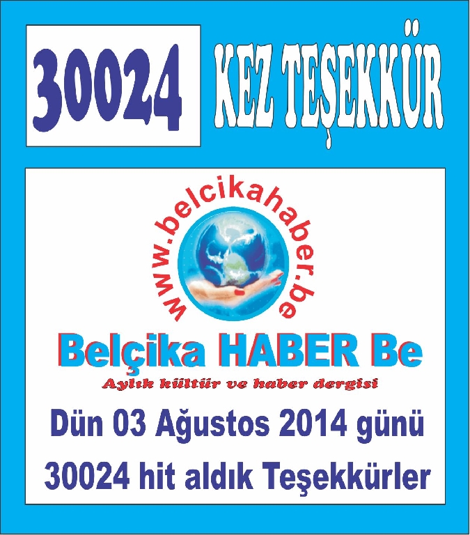 Belçika'da sanal haber siteleri içerisinde ençok izlenen ve Belçika Türklerinin sesi olan 'www.belcikahaber.be' sitemiz dün 03 Ağustos 2014 gün boyu 24 saatte 30 bin 024 kez tıklanarak şiödiye kadar en çok izlenen gün oldu.