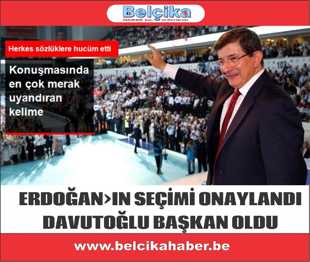 AK Parti’de bugün Davutoğlu dönemi başladı. Davutoğlu partisinin olağanüstü kongresinde tek aday gösterildi; adaylık teklifine ilk imzayı Erdoğan attı. Davutoğlu, bin 382 oy alarak Genel Başkan seçildi; sadece 6 oy geçersiz sayıldı.