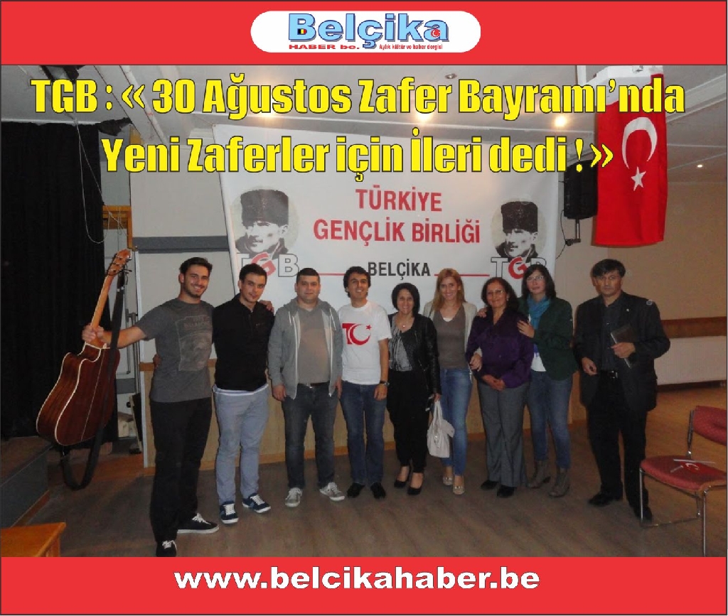 Türkiye siyasetinde öne çıkan hiç bir partinin/derneğin Belçika temsilcisi kutlamamışken, TGB Belçika yasaklanmaya ve unutturulmaya çalışılan 30 Ağustos Zafer Bayramı’nı her yıl olduğu gibi tatil ve yüksek öğrenim sınav dönemine aldırmadan kutlamıştır.