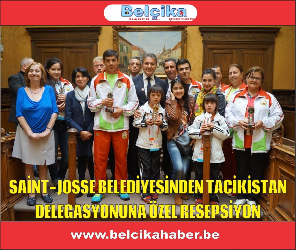 Saint-josse belediye başkanı Emir KIR, saat 12.30'da, Avrupa özel yaz olimpiyatları kapsamında belçikaya gelen,Tacikistan delegasyonu onuruna, Saint-Josse belediyesinde özel bir resepsiyon verdi.Resepsiyona Tacikistan delegasyonunun yanında, belediye yönetimi ve meclis üyelerinin çoğunluğu katıldı.