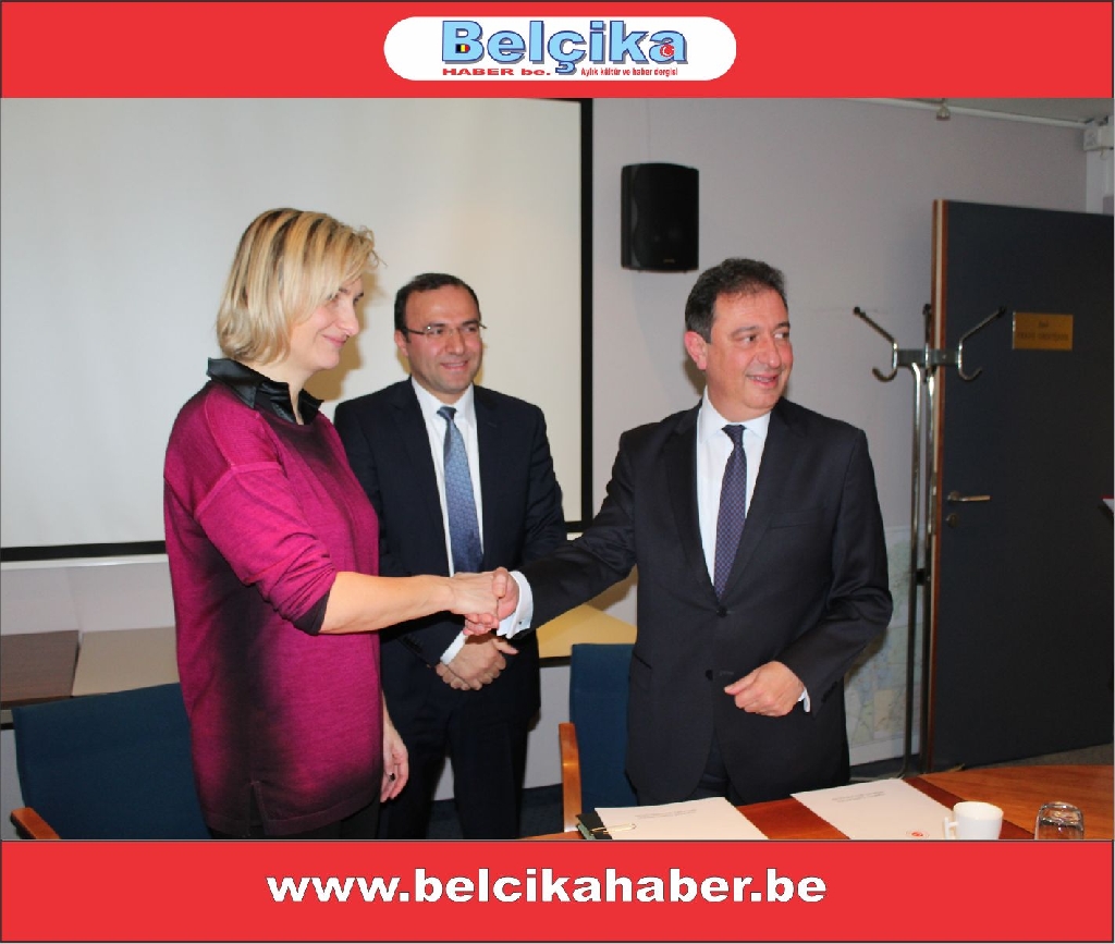 Protokol imza töreninde Federal Milletvekili (CD&V) Veli Yüksel, Büyükelçilik Müsteşarı Bilge Arslan ve Büyükelçilik Sekreteri Ferhan Akın da hazır