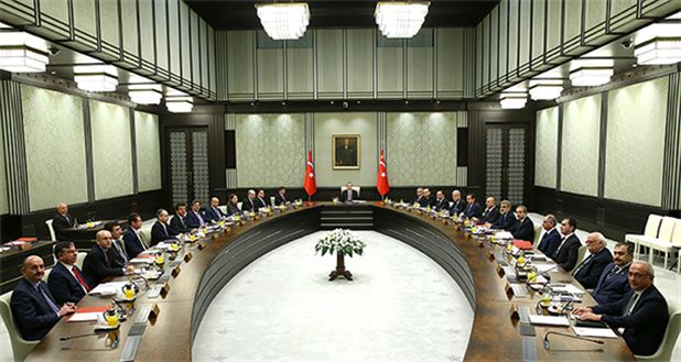 Türk siyasi hayatında bir ilk yaşanıyor. Daha önce açıklandığı gibi Bakanlar Kurulu, Cumhurbaşkanı Recep Tayyip Erdoğan başkanlığında ilk kez Cumhurbaşkanlığı Sarayı'nda toplandı.