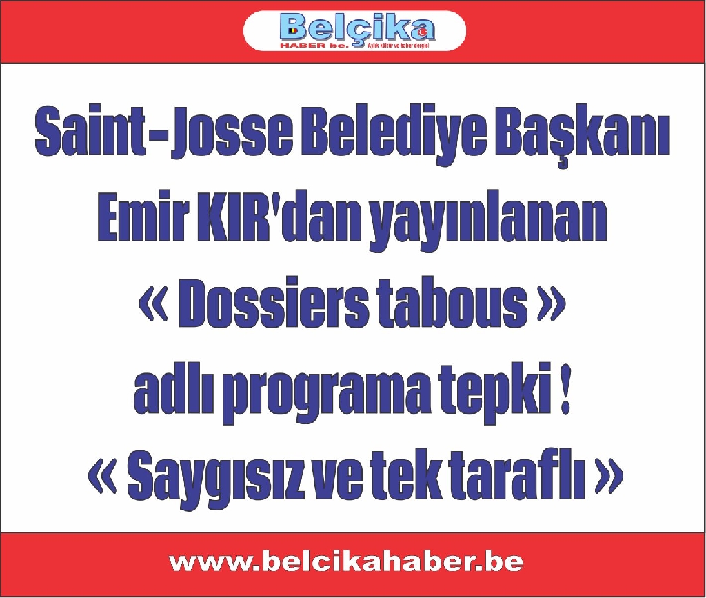 Ecolo eski Brüksel milletvekili, gazeteci Jean-Claude Defossé tarafından hazırlanan ve salı günü RTL-TVi yayınlanan « Tabu Dosyalar » adlı programa Belediye Başkanı Emir KIR, La Capitale gazetesine verdiği demeçle tepki gösterdi.