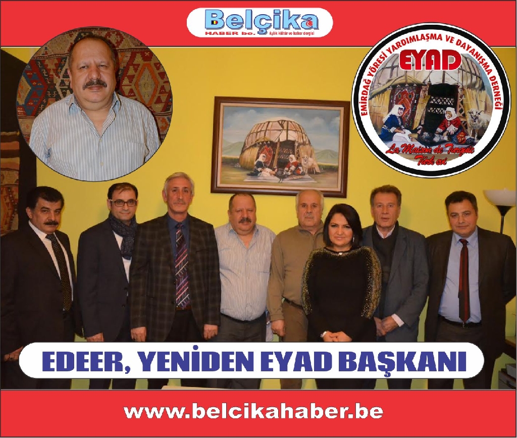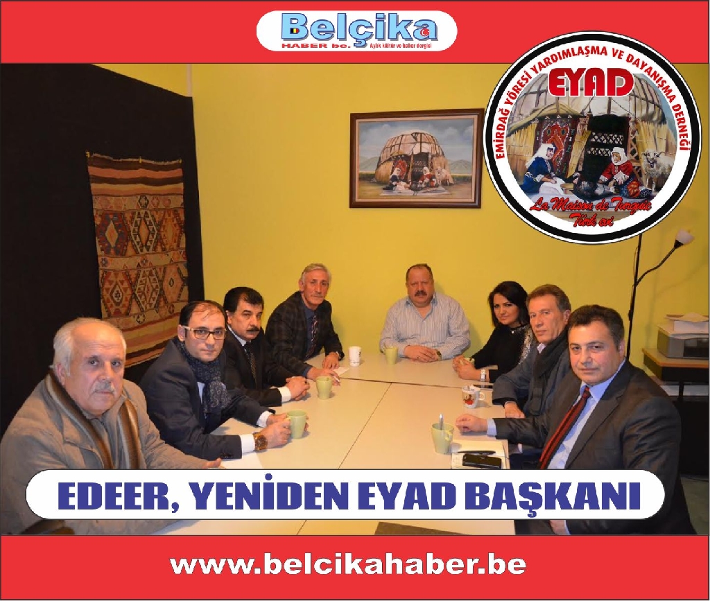 Merkezi Belçika’nın Başkenti Brüksel’de kurulu Emirdağ Yardımlaşma ve Dayanışma Derneği (EYAD) yeni yönetim kurulu üyeleri yapılan genel kurul toplantısı ile belirlendi. Yeni Başkan tekrar Metin Edeer oldu.