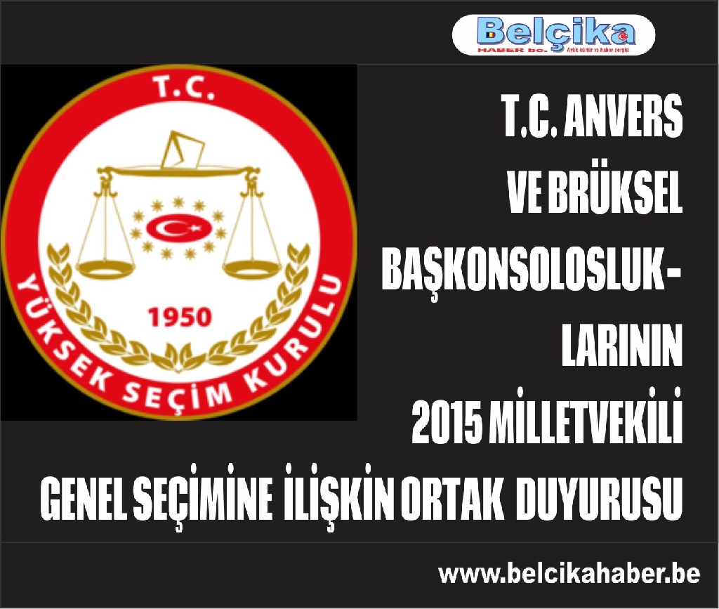 T.C. ANVERS VE BRÜKSEL BAŞKONSOLOSLUKLARININ 2015 MİLLETVEKİLİ GENEL SEÇİMİNE İLİŞKİN ORTAK DUYURUSU (NO: 2)