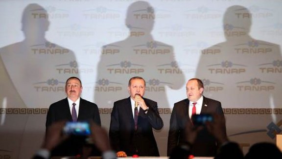 Cumhurbaşkano Recep Tayyip Erdoğan, Azerbaycan Cumhurbaşkanı İlham Aliyev, Gürcistan Cumhurbaşkanı Giorgi Margvelaşvili ile birlikte yaklaşık 10 milyar dolara çıkacak TANAP’ın (Trans Anadolu Doğalgaz Boru Hattı) temel atma törenine katıldı.