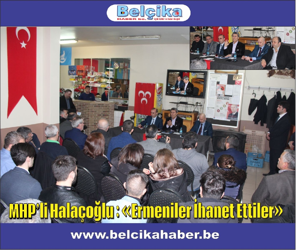 Ermeni meselesine ilişkin görüşmeler yapmak üzere Brüksel'e gelen MHP Kayseri Milletvekili Prof. Dr. Yusuf Halaçoğlu BTF salonunda halkla buluşarak, 1915 olaylarını bir soykırım olarak kabul etmediklerini, "Ermenilerin ihanet ettiklerini" vurguladı.