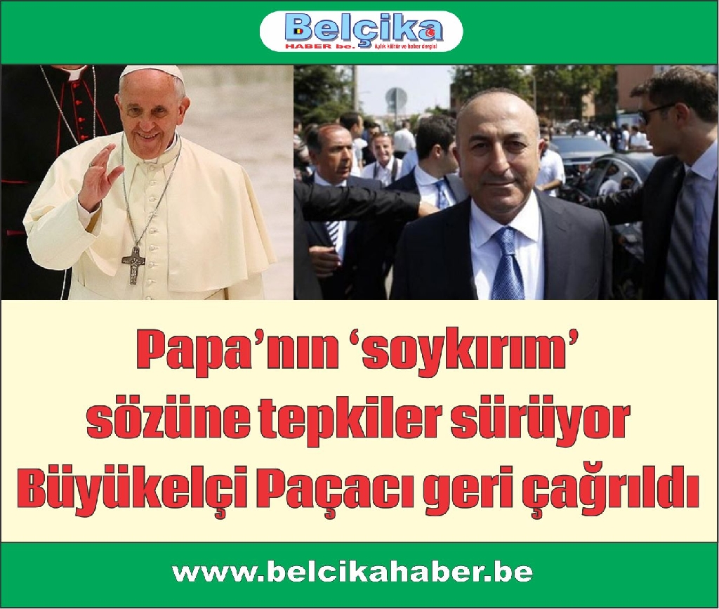 Türkiye’nin Vatikan büyükelçisi yurda çağrılırken, Dışişleri Bakanı Mevlüt Çavuşoğlu sert ifadeledle Papa’nın sözlerini eleştirdi.