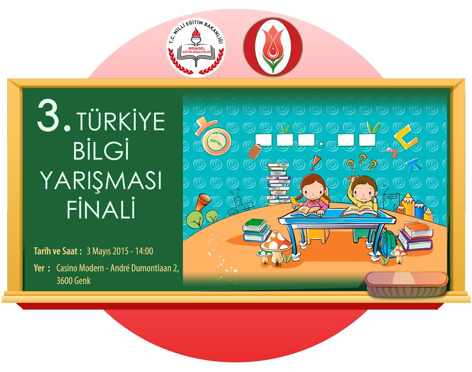Yıl boyunca derslerimizi okul ve dernek sınıflarında takip eden yaklaşık altı bin öğrencimiz önce sınıflarında sonra 11 eğitim bölge gruplarımız kendi aralarında finalde yarışabilmek için mücadele ettiler. Finalde üçer öğrenciden oluşan beş grup (Brüksel, Anvers-Gent, Genk, La Louviere ve Liege-Verviers) yarışacaktır. Onları yalnız bırakmayalım! Goldfm radyosundan Esen Kalın’ın sunumuyla 3 Mayıs 2015 Pazar günü saat 14:00‘de Casino Modern Salonunda Andre Dumontlaan 2, 3600 Genk adresinde gerçekleşecek programımıza tüm Türk toplumu davetlidir. Giriş ücretsizdir.