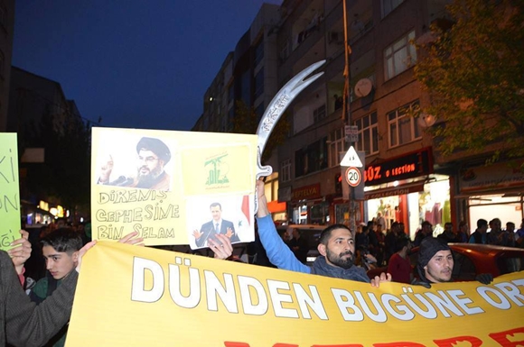 Alevi Gençliğin çağrıcı olduğu eylem saat: 20.00’de Gazi Cemevi önünde kortejlerin oluşturulmasıyla başladı. Mahallenin farklı noktalarından toplanma yerine sloganlarla yürüyen gruplar İsmetpaşa Caddesi boyunca yeni katılımlarla yürüdü. ‘Dünden Bugüne Ortadoğu Kerbela, İştebrak’ta Yapılan Katliama Karşı Tüm Türkiye Ayağa- Gazi Halkı/Alevi Gençlik ve Zülfikarı Kuşandık Geliyoruz’ pankartlarının açıldığı eylemde Suriye bayrağı, Beşar Esad ve Seyid Hasan Nasrallah’ın posterleri taşındı. Kortejle yürüyen binlere çevrede toplanan halkta alkış ve sloganlarla destek verdi. Araba sürücüleri de korna çalarak desteklerini gösterdi. İsmetpaşa Caddesinden eski karakol’a oradan aynı güzergah üzerinden Cemevi önüne kadar slogan ve marşlarla yürüyen kitle burada basın açıklaması gerçekleştirdi.
