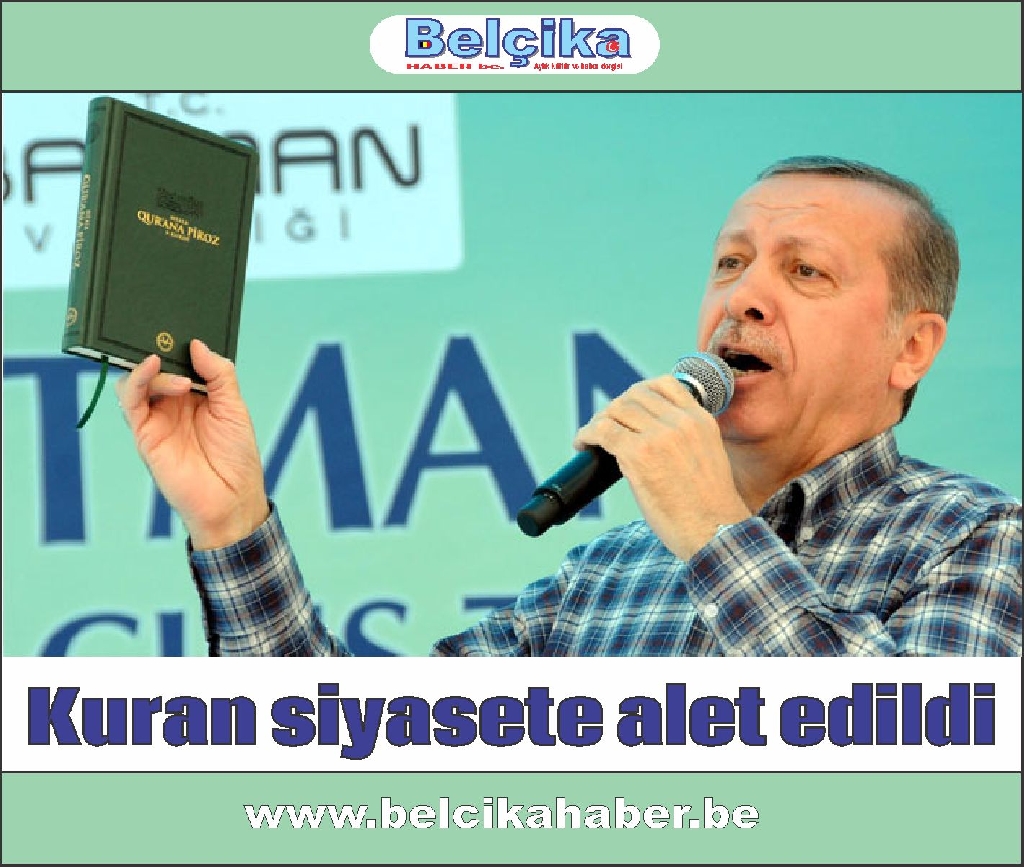 Elinde tuttuğu Kuran-ı Kerim'i miting meydanında sallayan Erdoğan AKP'ye oy istedi.