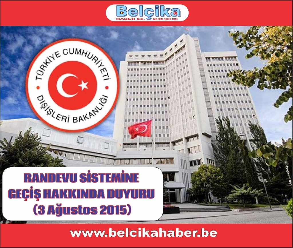 Brüksel Başkonsolosluğumuzca sunulan hizmetlerin kalitesinin artırılması ve vatandaşlarımızın bekleme sürelerinin asgariye indirilmesi amacıyla konsolosluk işlemlerine ilişkin tüm başvurular 14 Eylül 2015 tarihinden itibaren randevulu olarak kabul edilmeye başlanacaktır.