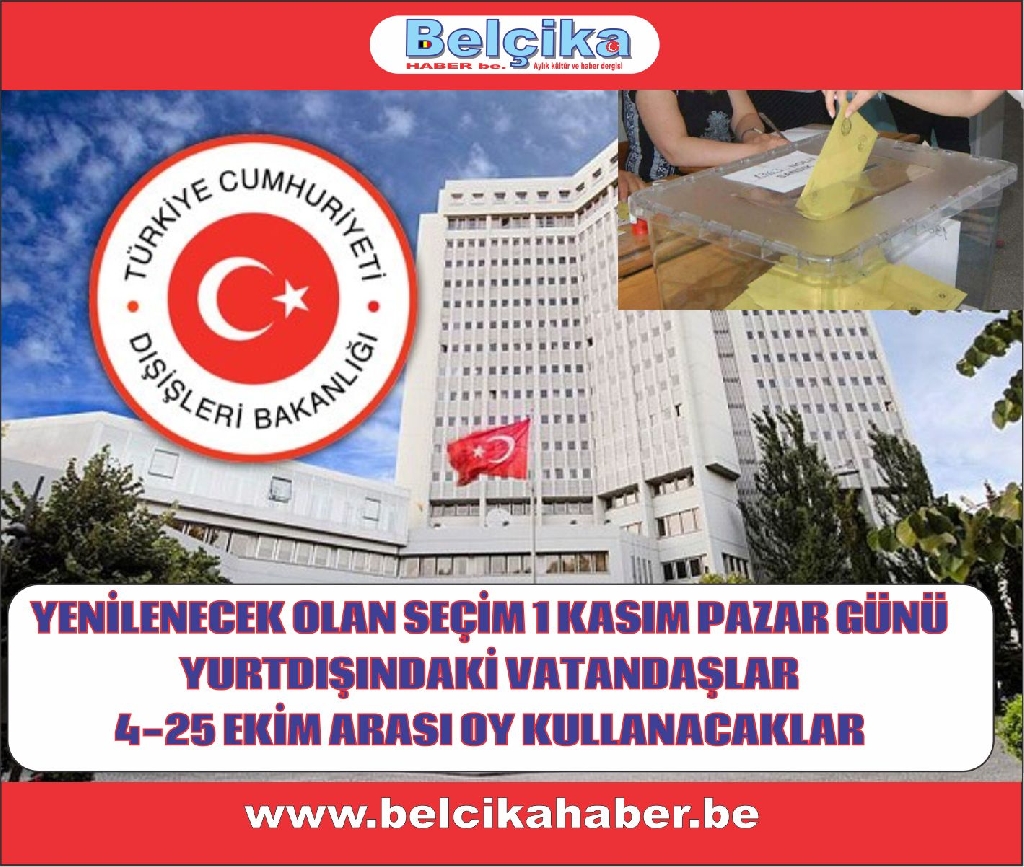 YSK Başkanı: Seçimler 1 Kasım'da yapılacak.Yurtdışındaki vatandaşlar 4-25 Ekim 2015 arası oylarını kullanacaklar. YSK Başkanı: Seçimler 1 Kasım'da yapılacak.