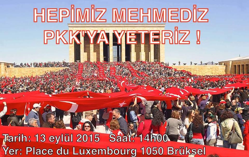 Belçika'da yaşayan Türkler olarak, şehitlerimizin katili pkk'yı protesto etmek icin TEK SES, TEK YÜREK oluyoruz.