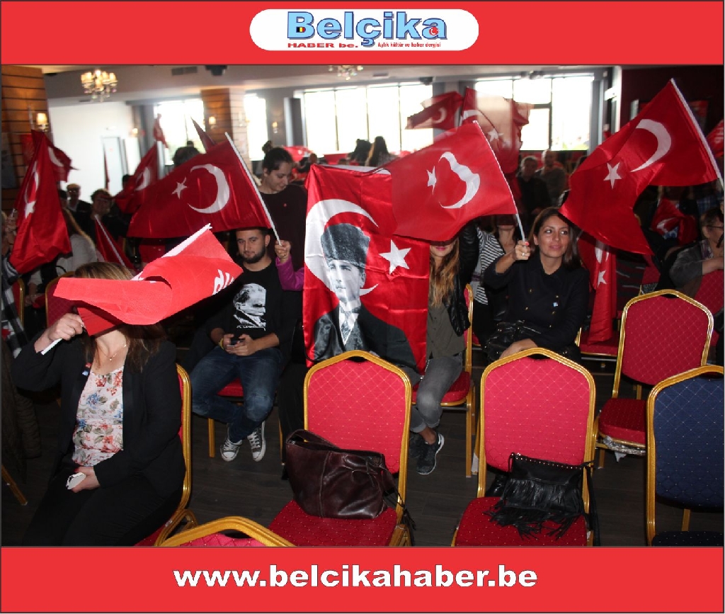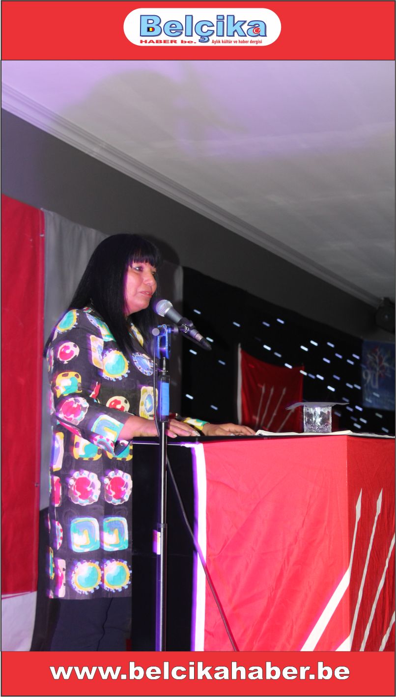 CHP Belçika Birliği Başkanı Zuhal Kayhan « Avrupa’da yaşayan Türk vatandaşları olarak her zaman bedenimiz Avrupa’da olsada, beynimiz sürekli Türkiye’de. Ülkemizin düştüğü durumdan çok huzursusuz, fakat bir umudumuz var » dedi Kayhan sözlerine şu şekilde devam etti : « Diyoruz ki! Mustafa Kemal’in kurduğu partiyi ikinci bir Kemal iktidara taşıyacaktır ve Başbakan olarak göreceğiz.” sözleri salondan büyük alkış aldı.