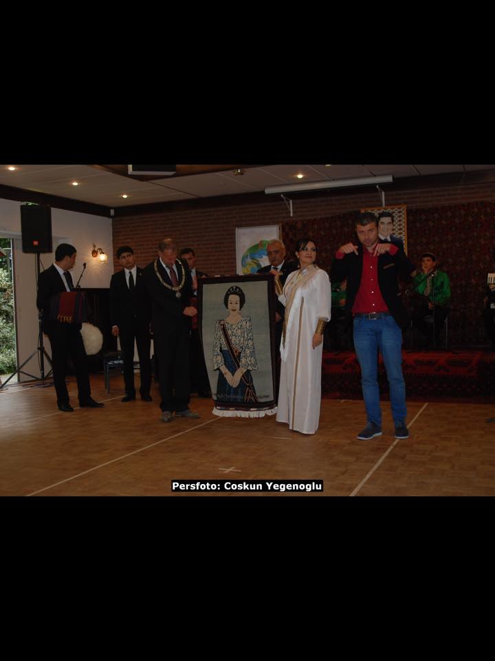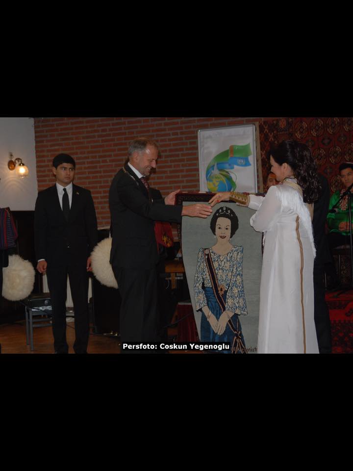 Günün anlamı ile ilgili yapılan selamlama ve teşekkür konuşmalarının ardından, katkılarından dolayı, Büyükelçi Kakadjan Mommadov Weert Belediye Başkanı Jos Heysman’a bir Türkmenistan Kaftanı ve Kalpağı, Dernek Başkanı Mengil Rahimi ise kendi eliyle dokuduğu ‘Ana Kraliçe Beatrix’in tablosunun bulunduğu halıyı hediye etti.