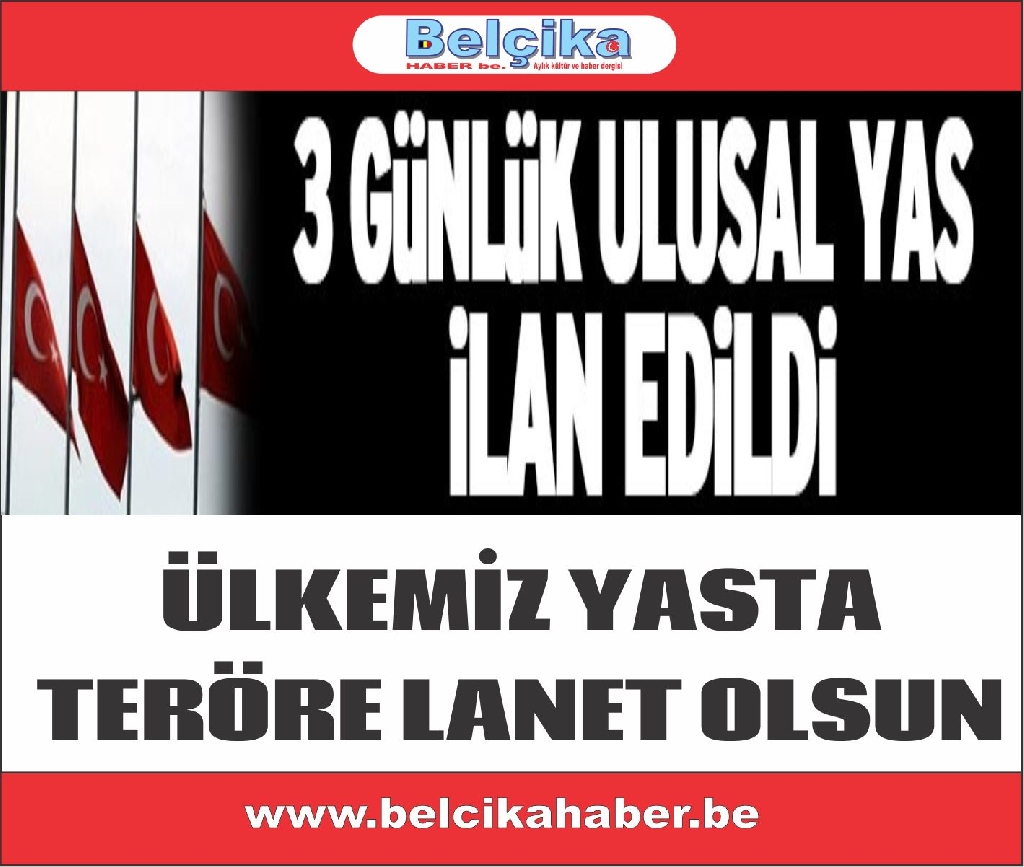 Davutoğlu: “3 gün ulusal yas ilan ettik”Başbakan Davutoğlu yaptığı açıklamada, Ankara'da gerçekleşen kanlı terör saldırısı sebebiyle 3 gün ulusal yas ilan edildiğini açıkladı.