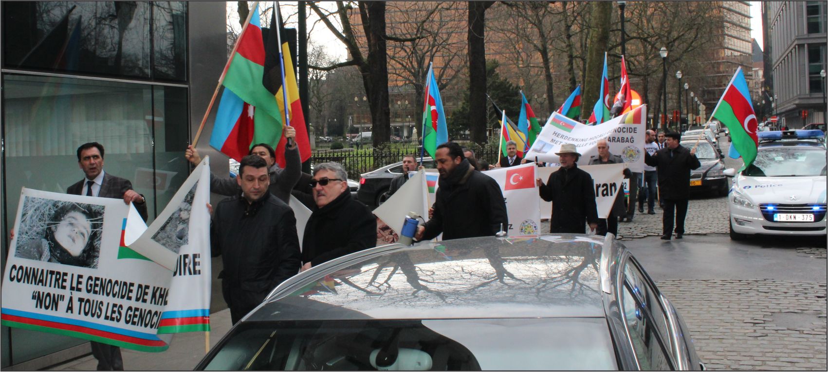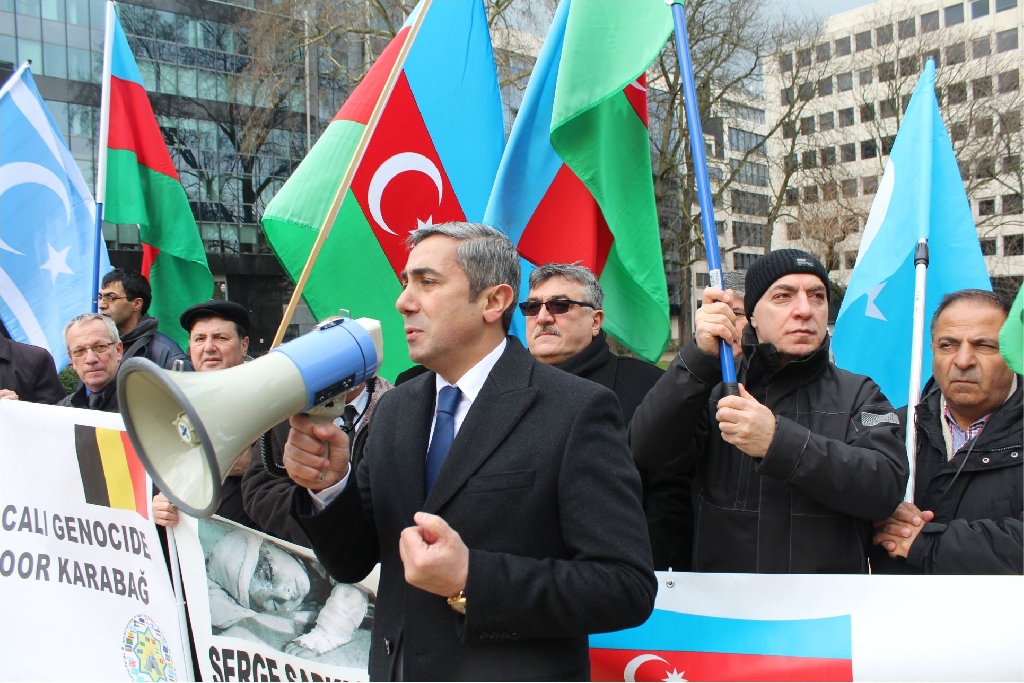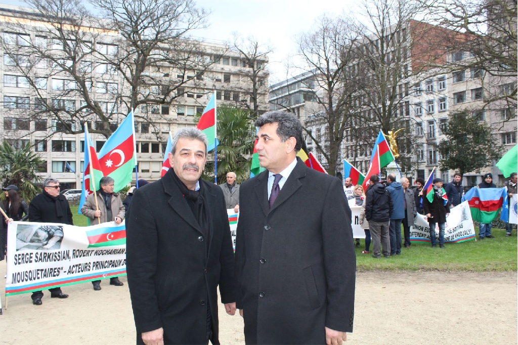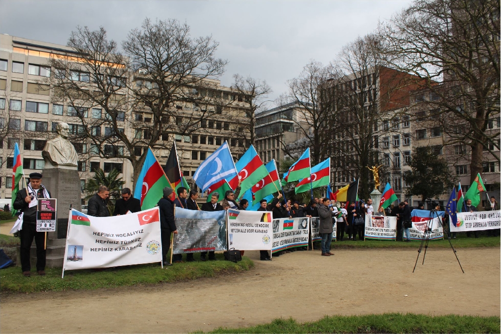 Azerbaycan Belçika Dostluk Cemiyeti tarafından Brüksel ‘Square De Meeus’ organize edilen mitinge Dünyanın değişik kıta ve ülkelerinden gelen Dernek ve Birlik Başkan ve yöneticileri Türk dünyasının bayraklarıyla katılarak, ‘Hepimiz Türküz’,‘Hocalı’ya Adalet’, ‘Hepimiz Karabağız’, ‘Hepimiz Hocalıyız’,‘Katil Ermanistan, Katil Sarkisyan’ sloganlarıyla gösteri yaptılar.