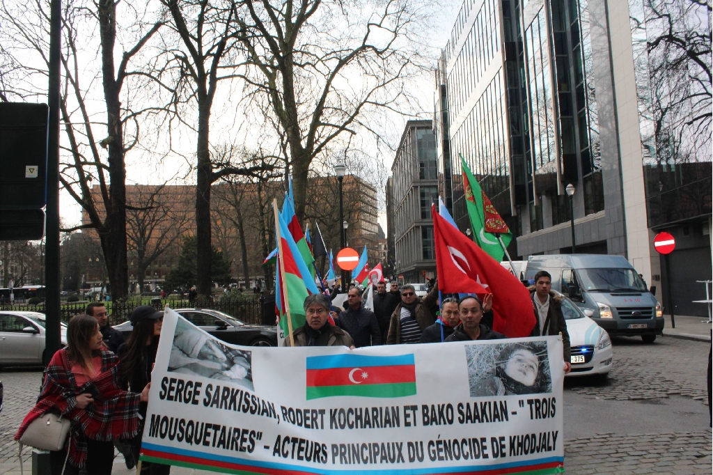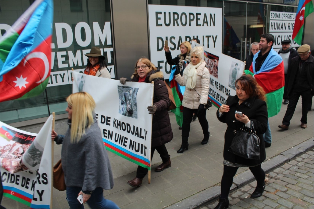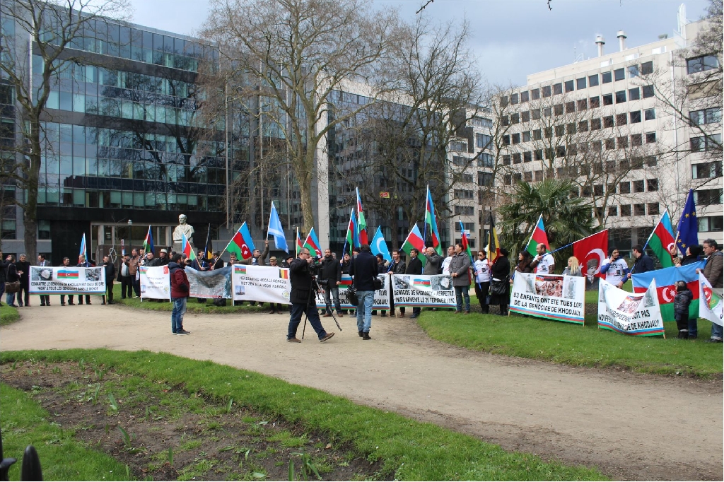 Ermenilerin yakın tarihimiz 1992 yılında Karabağ’da yaptıkları Hocalı Soykırımı’nın 24. yıldönümünde, Azerbaycan Belçika Dostluk Cemiyeti AB'nin başkenti Brüksel'de, ‘Hocalı’ya Adalet’ adlı bir miting ve Yürüyüş gerçekleştirdi.