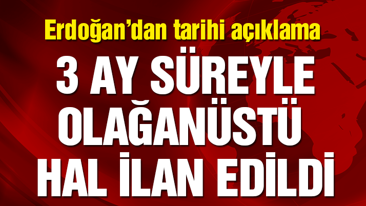 Cumhurbaşkanı Erdoğan, MGK ve Bakanlar Kurulu toplantılarının ardından çok kritik bir açıklama yaptı. Cumhurbaşkanı Erdoğan, alınan kararlar sonucu 3 ay süreyle Olağanüstü Hâl ilan edildiğini duyurdu.