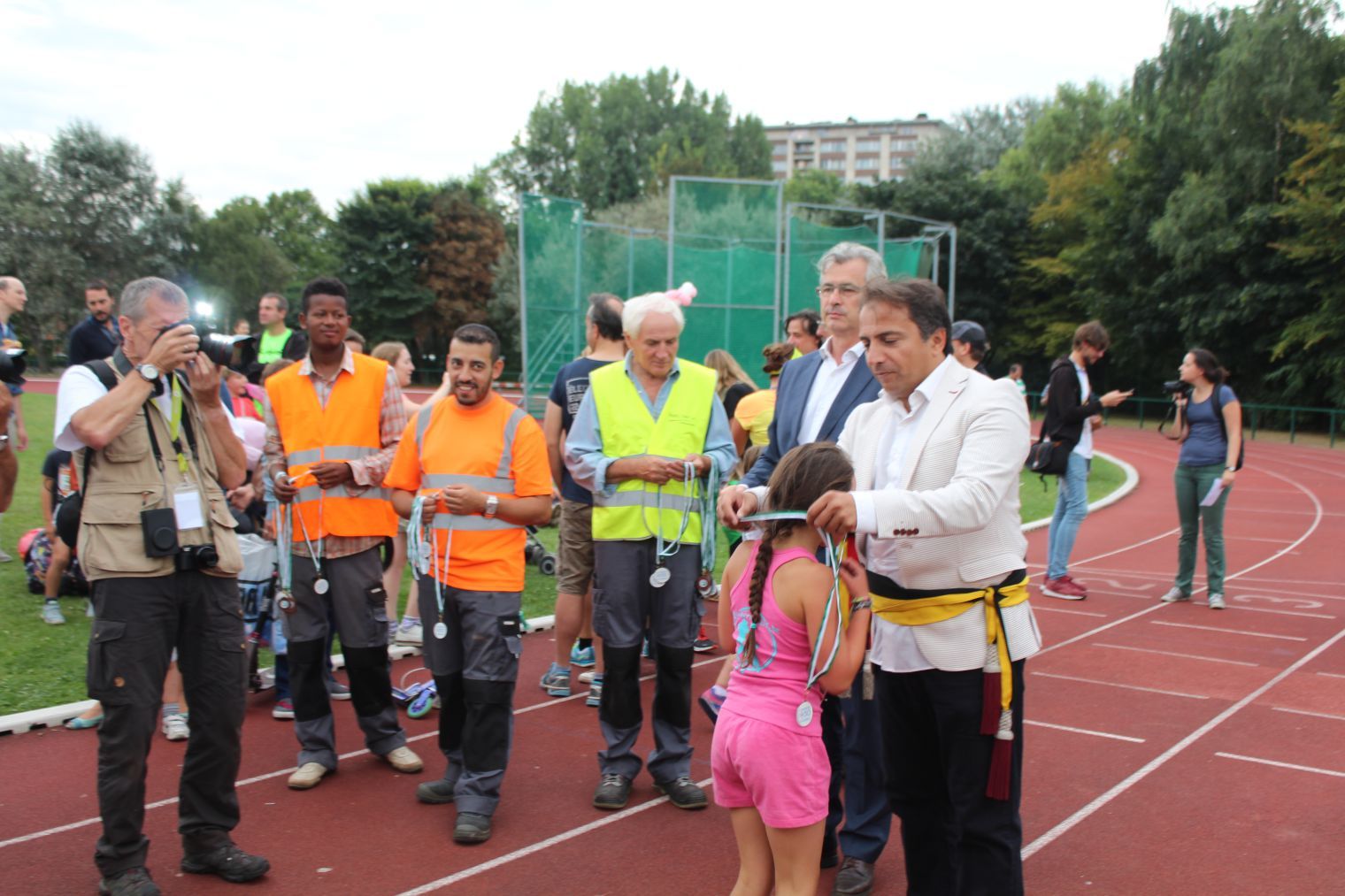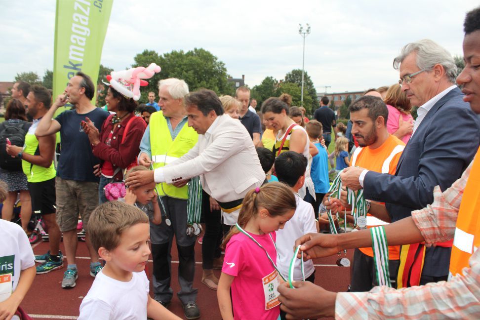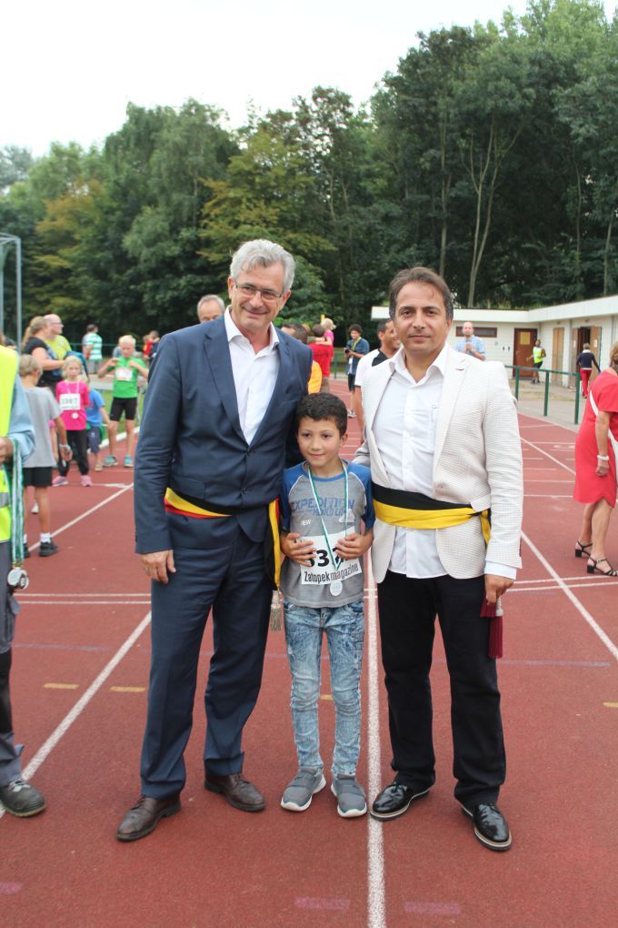 Başkan Clerfayt, Spordan Sorumlu Başkan Yardımcısı Sait Köse ve Kültürden Sorumlu Başkan Yardımcısı Étienne Noël koşuya katılan yüzlerce çocuğun madalyonunu birlikte taktılar.