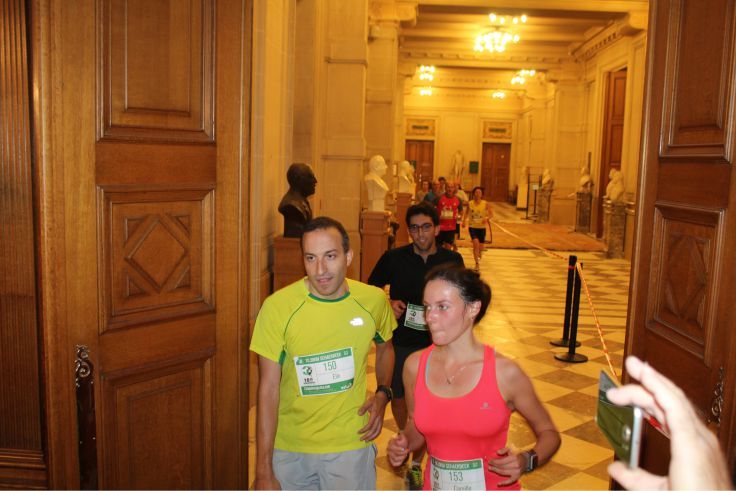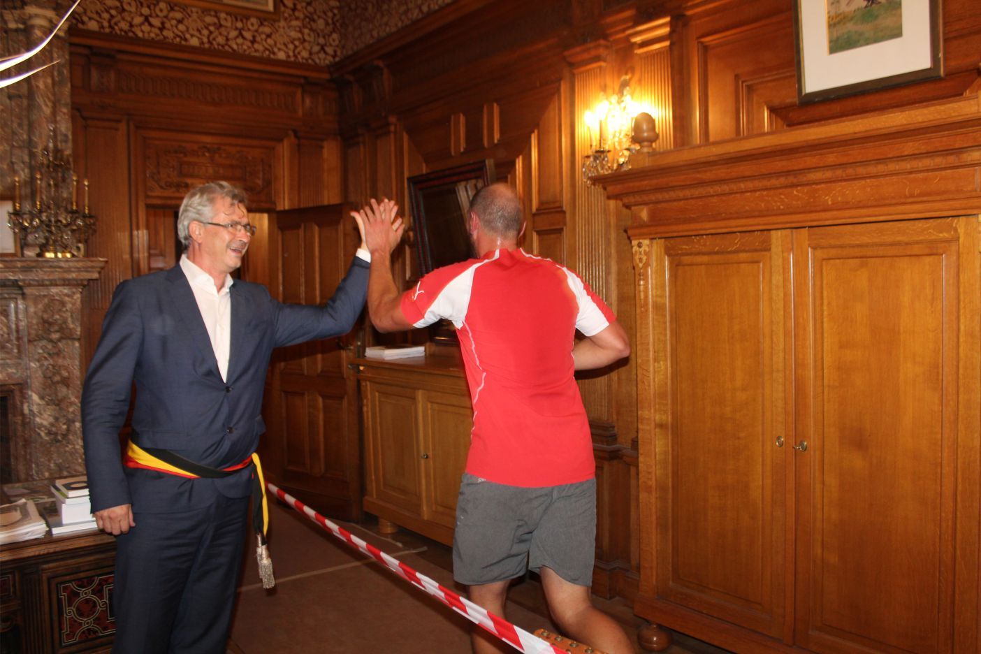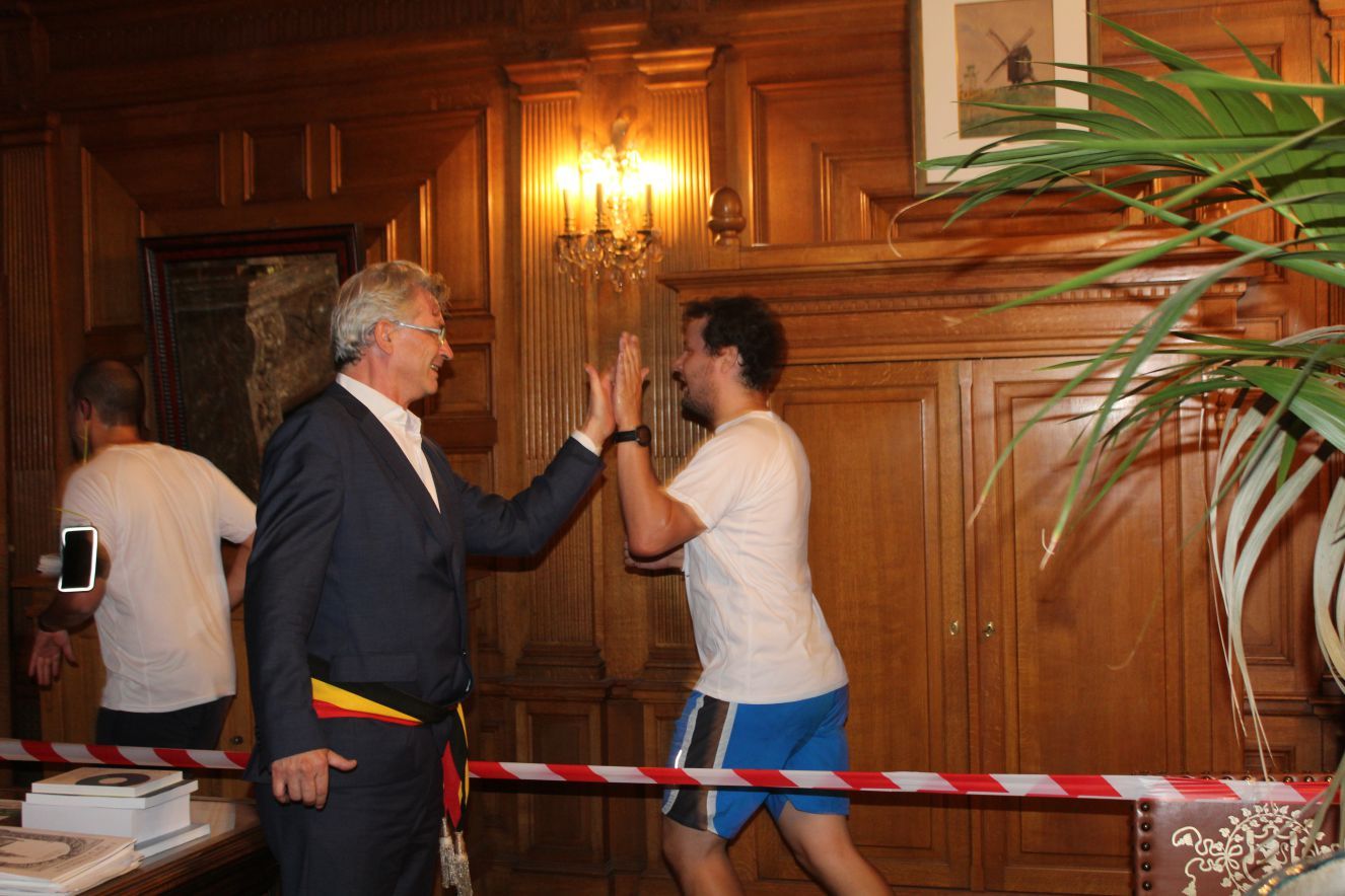 Schaerbeek ve diğer bölgelerden koşuya katılan Schaerbeek Belediye Başkanının makam odasınıda içine alan güzergahta Maratona katılan binlerce koşucunun başlama startını Başkan Clerfayt, Spordan Sorumlu Başkan Yardımcısı Sait Köse ve Kültürden Sorumlu Başkan Yardımcısı Étienne Noël başlama birlikte verdiler.