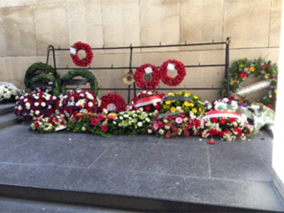 Leper Belediye Binası önünde Belediye Başkanı Jan Durnez ve Belediye yetkilileri tarafından karşılamayı müteakip katılımcılarla birlikte bando eşliğinde Şehitler Abidesi’nin bulunduğu