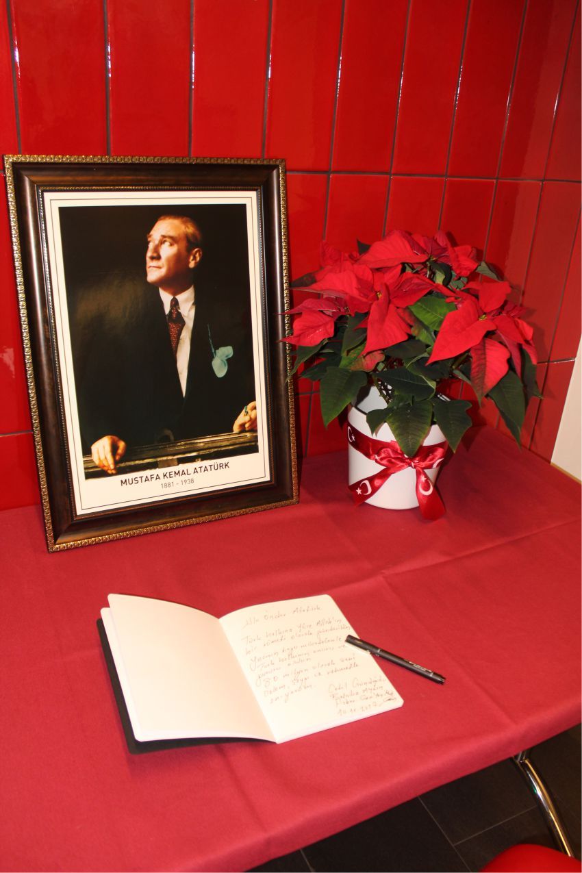 Atatürk'ün yaşamından kesitlerin sunulduğu sinevizyom gösterimi ve günün anısına açılan hatıra köşesindeki deftere duyguların yazılmasının ardından program sona erdi.
