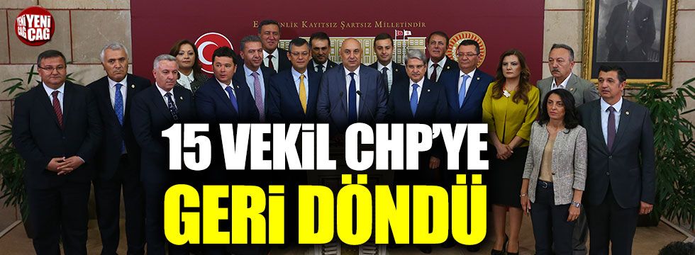 Partisinden istifa ederek seçimlere girebilmesi için İYİ Parti'ye geçen 15 milletvekili, İYİ Parti'nin seçimlere girmesinin önünde engel kalmamasının ardından CHP'ye geri döndü.