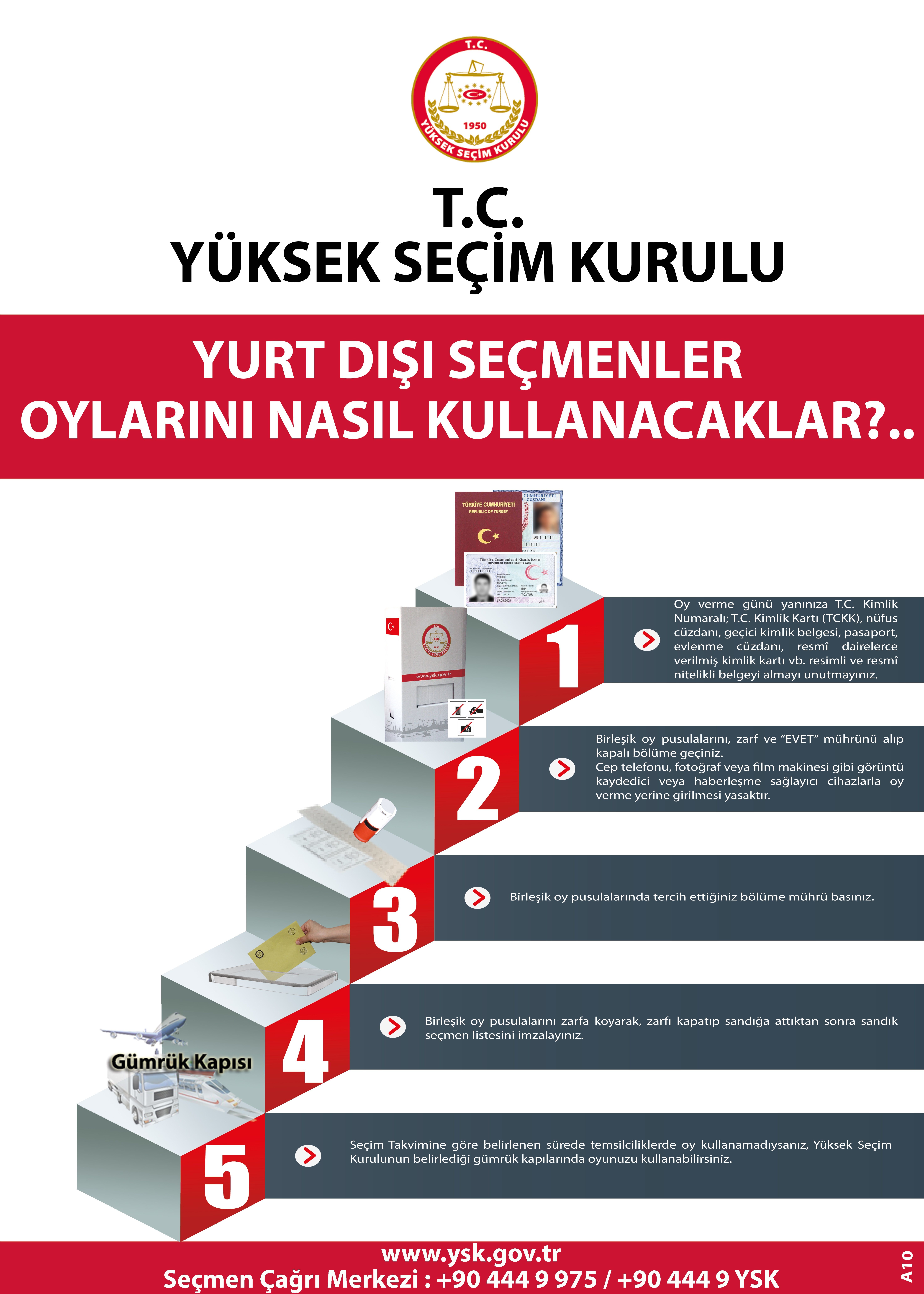 ~~Cumhurbaşkanı ve 27. Dönem Milletvekili Genel Seçimi kapsamında YSK tarafından yurtdışında oy kullanacak vatandaşlarımıza yönelik olarak hazırlanan bilgilendirici afişlerin birinci bölümü ekte sunulmaktadır.