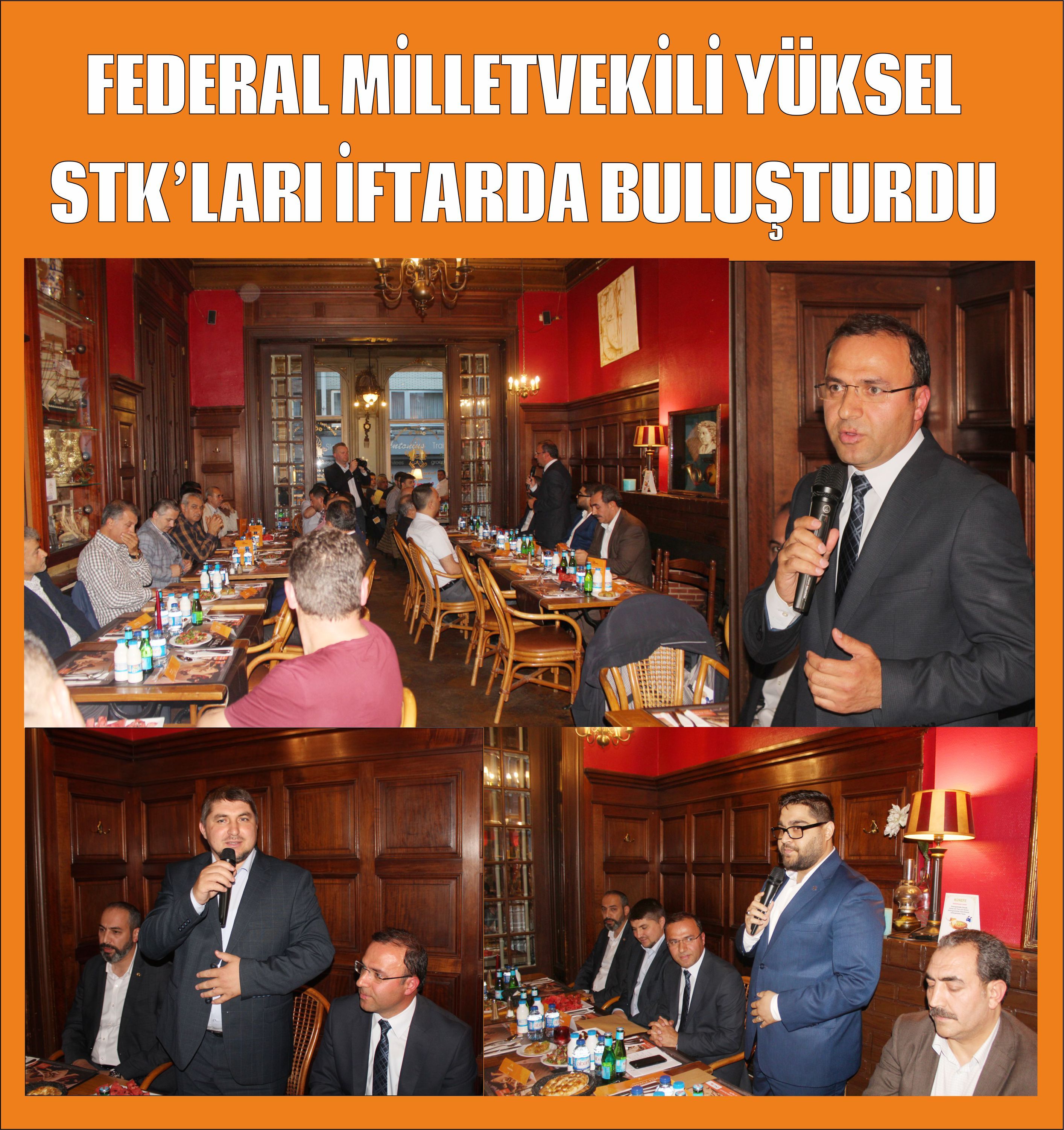 İftar öncesi yapılan konuşmalarda iftara ev sahipliği yapan Federal Milletvekili Veli Yüksel, iftar davetine katılan tüm katılımcılara teşekkür ederek, “Hepinizin bildiği gibi ramazan ayı manevi anlamda rahmet ve bereket ayı olmasının yanında çeşitli uluslara mensup insanlarında bir araya gelebildiği dayanışma ve kardeşlik sofralarının kurulduğu aydır. Ramazan ayı kardeşlik ve barış ayıdır.