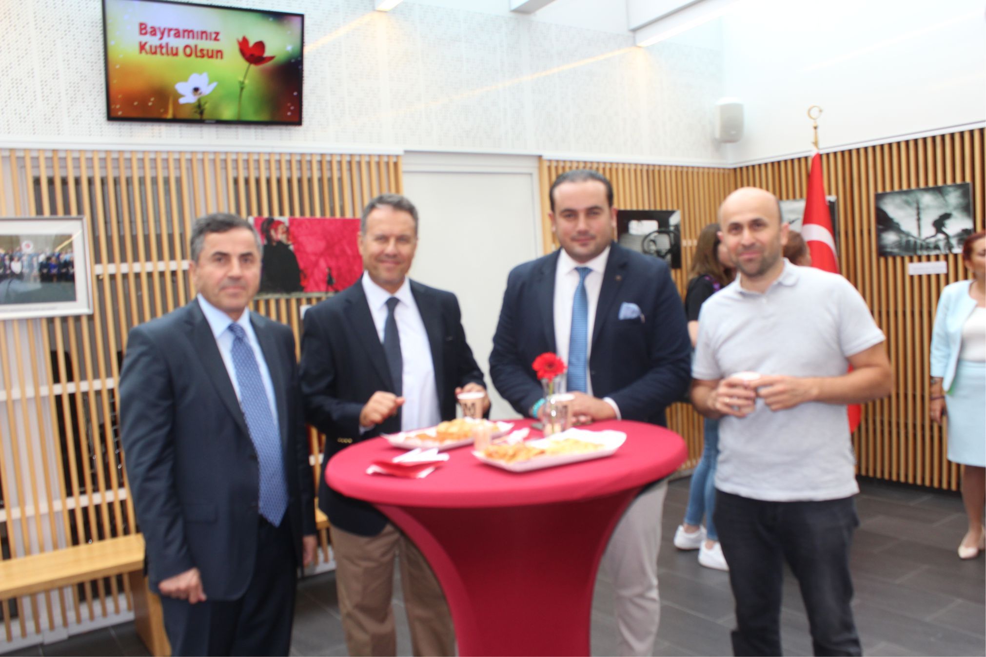 Kutlamaya T.C. Brüksel Büyükelçisi Levent Gümrükçü, Başkonsolosluk çalışanları, Schaerbeek belediye başkan yardımcısı Sadık Köksal, Belçika Başbakanı Danışmanı ve Evere belediyesi meclis üyesi Belma Tek, Anderlecht belediye meclis üyesi Mustafa Ulusoy, Belçika'da siyaset yapan siyasetçiler, Sivil toplum kuruluş temsilcileri ve akademi çevresinden üniversite de okuyan öğrenciler katıldı.