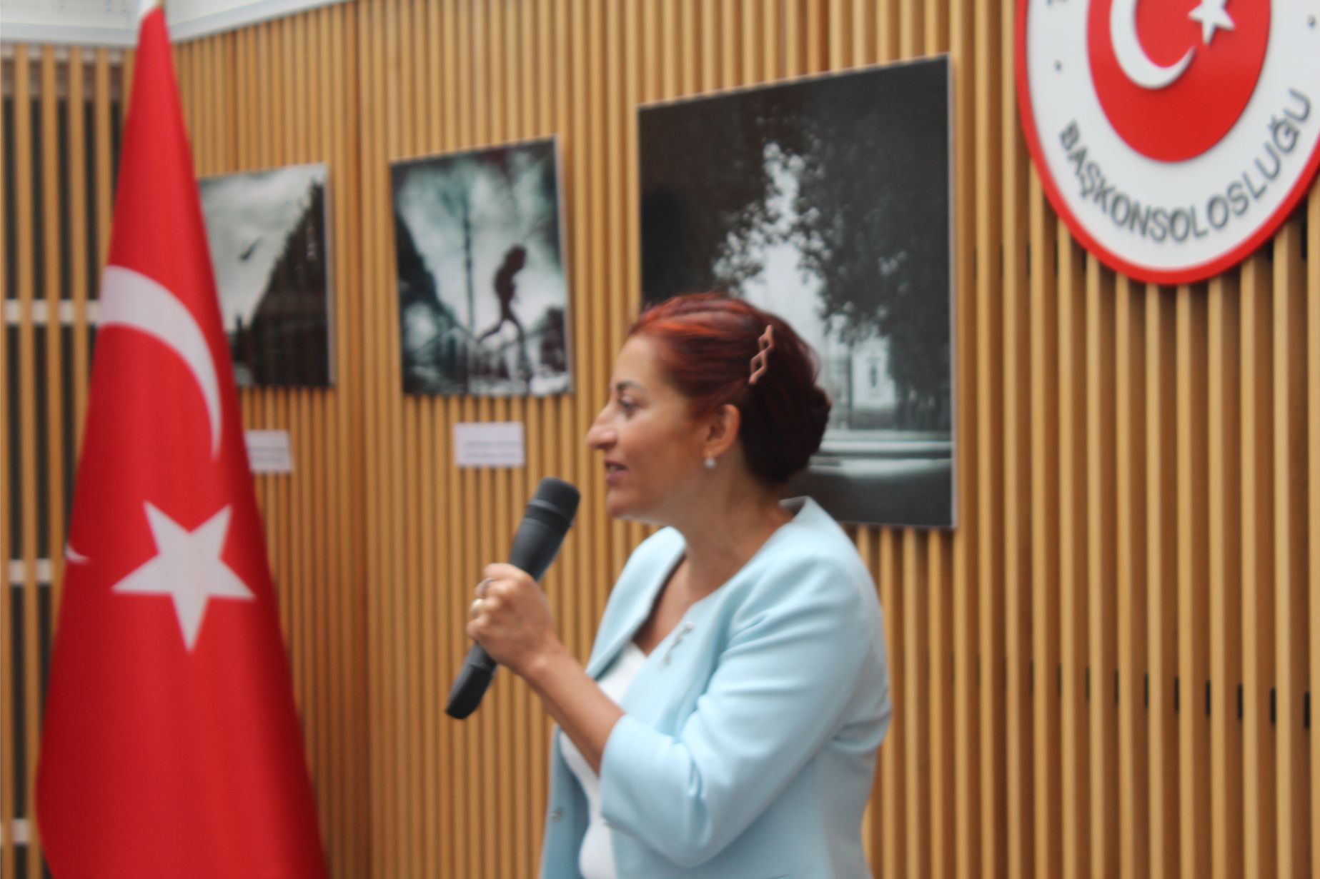 Sıcak bir ortamda gerçekleşen bayramlaşma programında bir selamlama konuşması yapan Brüksel Başkonsolosu Dilşad Kırbaşlı Karaoğlu,