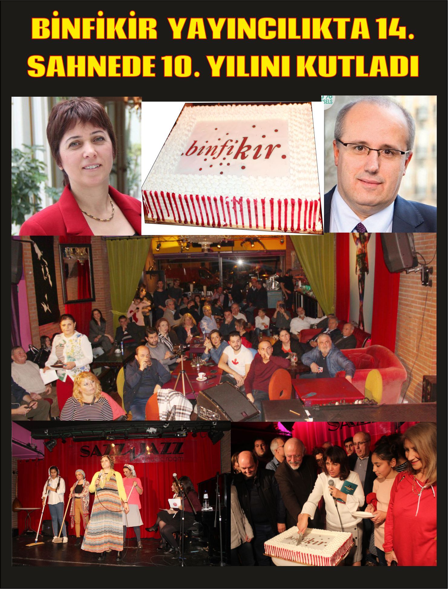 Binfikir Gazetesi yayınının 14.cü, Binfikir Tiyatrosu'nun 10. yıldönümünü "˜Sazz N Jaz'da yazarları, binfikir tiyatro oyuncuları ve okurları ile kutladı.