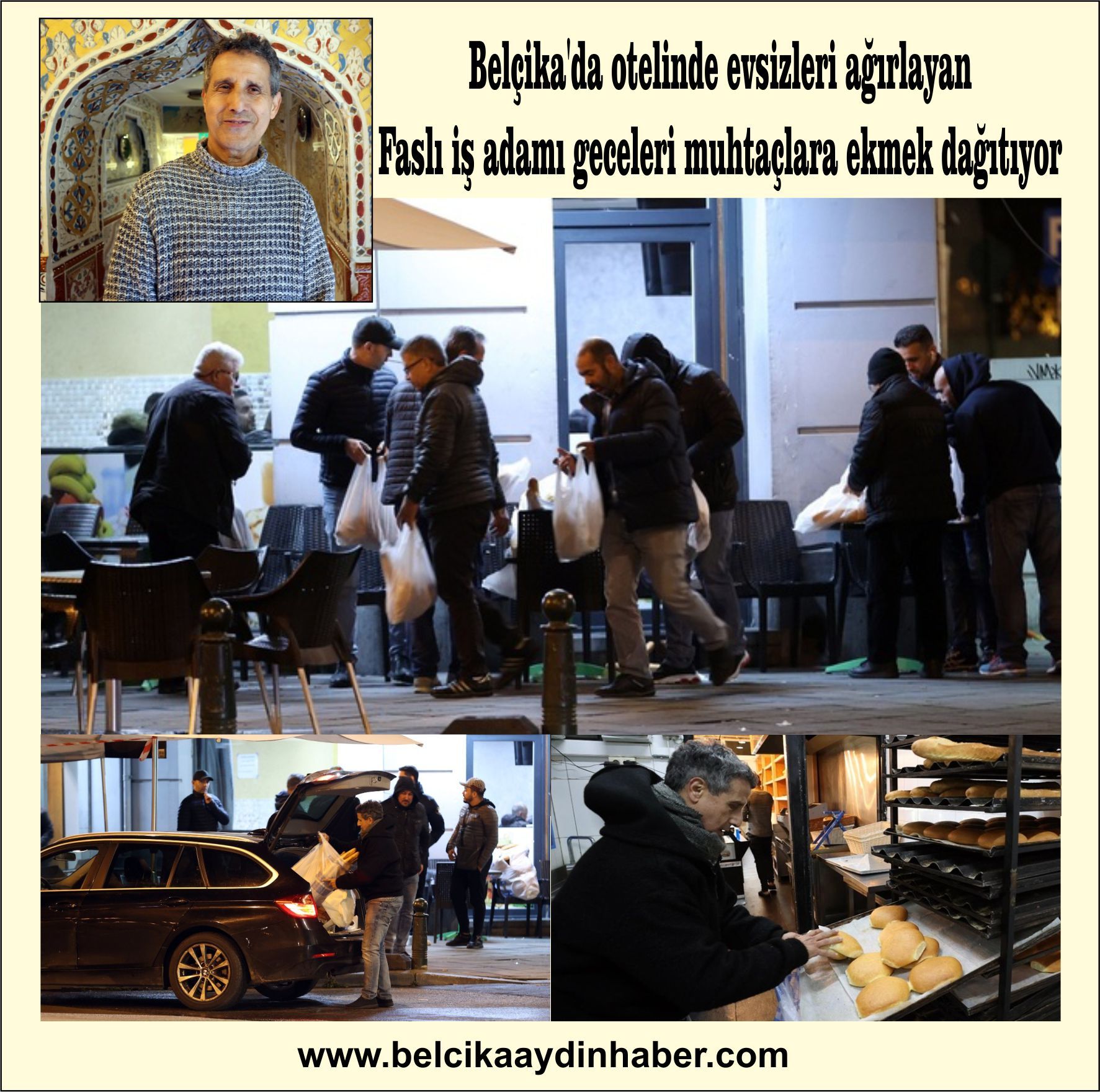 Belçika'nın başkenti Brüksel'de otelinin kapılarını evsizlere açan 68 yaşındaki Faslı Ahmed bin Abdurrahman, geceleri de şahsi aracıyla muhtaçlara ekmek dağıtarak İslam'ın gereğini yaptığını söylüyor.