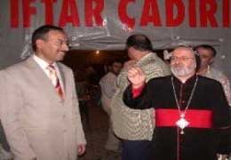 Birbirinden farklı din, dil ve ırklara mensup vatandaşların hoşgörü ve barış içerisinde yaşadığı Mardin'de, Hristiyan dinine mensup Süryani cemaati iftar yemeği verdi. Yüzyıllardır Yezidi, Ermeni, Süryani ve Müslümanlar'ın bir arada hoşgörü, barış içerisinde yaşadığı 7 bin yıllık tarihi geçmişe sahip Mardin'de, Diyarbakır-Mardin Süryani Metropoliti Nuri Saliba Ãzmen ve işadamı Tekin Alkan tarafından verilen iftar yemeği renkli görüntülere sahne oldu. Mardin Belediyesi'nin iftar çadırında verilen yemekte, Müslümanlar ve Süryaniler aynı masayı paylaşarak, bu birlikteliğin bütün dünyaya örnek olması temennisinde bulundu. İftar öncesi Mardin Müftüsü Masum Taşcı ile bir süre sohbet eden Oxford Ãniversitesi mezunu Süryani Metropoliti Nuri Saliba Ãzmen, Mardin'in kendine has güzelliklerinin bulunduğunu belirterek, aynı avluyu paylaşan, aynı sırada oturan, aynı şeylere gülüp, aynı şeylere üzülen, ortak değerleri bulunan dinleri ayrı insanların dini münasebetlerdeki hoşgörü ile sevgi ve saygı sınırlarını genişlettiklerini söyledi. Mardin'in tarih boyunca kültürel değerleri ve tarihi yapısıyla farklılıklar sergilediğini dikkat çeken Ãzmen, bu farklılıkların kentte yaşayan farklı dinlere mensup insanlara ayrıcalıkları aşıladığını vurguladı. Müftü Taşçı ise, iftar çadırında Müslümanlar ile Hristiyanlar'ın buluşmasının manevi anlamda büyük önem taşıdığına dikkat çekerek, "Mübarek Ramazan ayında Süryani bir hemşehrimiz 7 bin Müslüman'a iftar yemeği verdi. Bu güzelliği, bu hoşgörüyü, bu sevgi selini bir başka yerde görmek mümkün mü? Bu güzelliklerin, bu sevginin devamını diliyorum" dedi. 2 gün boyunca yaklaşık 7 bin kişiye iftar yemeği verecek olan işadamı Tekin Alkan, yemeğe katılan gazetecilerin daha önceki yıllarda iftar yemeğiyle ilgili yaptıkları haberlerde Süryani asıllı işadamı olarak kendisinden söz edildiğini, bunun ise kendisini üzdüğünü belirterek, "Benim için Süryani asıllı yazmayınız. Bana çok anlamsız geliyor. Ben Atatürk ve Cumhuriyet çocuğuyum. Türküm ve Türk olmaktan gurur duyuyorum. Şimdi size Türk asıllı gazeteciler mi diyeyim. Hepimiz bu vatanın evlatlarıyız" şeklinde tepkisini dile getirdi. Müslümanlar olarak iftar çadırında Süryani vatandaşları yanlarında görmenin kendilerini mutlu ettiğini söyleyen işadamı Süleyman Ãelik de, "Bu dayanışma, hoşgörü ve birliği hep beraber burada yaşayan Türk olsun, Kürt olsun, Arap olsun, Müslüman olsun, Süryani olsun her kim olursa olsun burada Mardin'de bir aile ortamını sağlıyoruz. Dünyaya örnek olacak bu değerleri gelecek nesillere aktarma konusunda herkes bunu görsün istiyorum. Biz her zaman birlik ve beraberlik içinde kardeşçe yaşıyoruz" diye konuştu. Müslümanlar'a bir Süryani olarak iftar vermelerinin mutluluğu içinde olduğunu belirten Süryani Cemaati Sözcüsü Yusuf Bektaş ise, "Mardin bir kültür şehri, dayanışma şehri ve hoşgörü şehridir. Bugün bu değerler bizim için çok değerlidir. Onun için buradayız. Biz bunu söylemiyoruz, konuşmuyoruz, biz bunu yaşıyoruz. Mardin bir model şehirdir. Oruçlu günlerde olsun, dini bayramlarda olsun veyahut devlet bayramlarında olsun gördüğünüz gibi Mardin müftüsüyle metropolitiyle, valisi ve belediye başkanıyla birer aile gibidir" şeklinde konuştu. İlk gün bin 200'ü iftar çadırında olmak üzere 3 bin 700 kişiye verilen iftar yemeğinde etli taze fasulye, pilav, çorba, tatlı ve meşrubat ikram edildi. İftar yemeğine ayrıca vali yardımcıları, sivil toplum kuruluşu ve siyasi parti temsilcileri ile işadamları katıldı