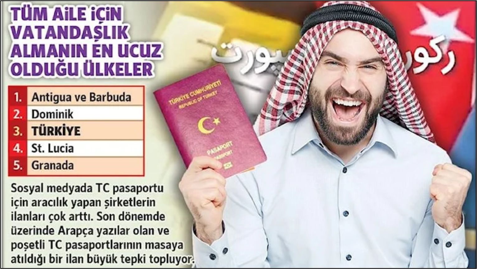 Türkiye dünyada bir aileye en ucuz vatandaşlık sunan üçüncü ülke konumuna geldi.