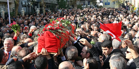 Erdal İnönü bugün son yolculuğunda. Türkiye İnönü'ye veda ediyor... ABD'de vefat eden eski başbakan yardımcısı ve dışişleri bakanı Prof. Dr. Erdal İnönü, İstanbul'da son yolculuğuna uğurlanıyor. Erdal İnönü için Teşvikiye Camii'nde cenaze namazı kılındı. İnönü'nün Amerikan Hastanesi morgundan alınan Türk Bayrağı'na sarılı naaşı, Teşvikiye Camii'ne getirilerek avludaki musalla taşına konuldu. İnönü'nün üzeri kırmızı beyaz karanfillerle süslenen naaşının önüne, eşi Sevinç İnönü'nün ''Güzel insan, canım eşim, güle güle'' yazılı çiçek ve Prof. Dr. İnönü'nün fotoğrafı konuldu. Burada namaz vaktine kadar cenaze başında polisler tarafından saygı nöbeti tutuldu. Prof. Dr. Erdal İnönü için öğle namazının ardından cenaze namazı kılındı. Din görevlisi, namazın ardından ''Atatürk'ün yakın silah arkadaşı, Türkiye Cumhuriyeti'nin ikinci Cumhurbaşkanı İsmet İnönü'nün oğlu Erdal İnönü'nün çok kıymetli bilim ve devlet adamı olduğunu'' ifade ederek, törene katılanlardan helallik istedi. Törene katılanların helallik vermesi ve dua okumasının ardından Erdal İnönü'nün Türk Bayrağı'na sarılı naaşı, törene katılanların alkışları arasında başta aile üyeleri olmak üzere katılımcılar tarafından omuzlara alınarak, cenaze aracına konmak üzere Nişantaşı Vali Konağı Caddesi'ne kadar taşındı. Bu sırada, Erdal İnönü'nün eşi Sevinç İnönü, kardeşi Ãzden Toker, yeğenleri Eren ve Hayri İnönü ile Gülsün Bilgehan Toker ve Güçlü Toker, kardeşi merhum Ãmer İnönü'nün torunu Ãmer İnönü ve Münci İnönü ile törene katılanlar da cenazenin arkasından yürüdü. Bu arada Münci İnönü, yürüyüş boyunca Erdal İnönü'nün fotoğrafını taşıdı. Yürüyüşün ardından Prof. Dr. İnönü'nün naaşı, ebedi istirahatgahı olan Zincirlikuyu Mezarlığı'na götürülmek üzere cenaze aracına konuldu. CENAZEDEN NOTLAR Prof. Dr. Erdal İnönü'nün Teşvikiye Camii'ndeki cenaze törenine, siyaset, iş ve sanat dünyasından birçok ünlü isim ile çok sayıda vatandaş katıldı. Bu arada cenazede, üzerinde ''Cumhurbaşkanı'' yazan Cumhurbaşkanı Abdullah Gül'ün çelenginin yanı sıra Genelkurmay Başkanı Orgeneral Yaşar Büyükanıt ve eşi ile tüm kuvvet komutanlarının çelenkleri de yer aldı. Teşvikiye Camii'nin avlusunun törene katılanları almadığı ve bu nedenle cami önündeki ana caddede de vatandaşların kalabalık bir şekilde töreni izlediği görüldü. Cami dışındaki binalardan birine, üzerinde Erdal İnönü, Bülent Ecevit, İsmail Cem, Aydın Güven Gürkan'ın fotoğraflarının bulunduğu ve ''Türk soluna yön veren büyük liderler... Sevgi, saygı, hassasiyetinizi onlar yaşarken neden göstermediniz?'' yazılı pankartın asıldığı görüldü. Ãte yandan Erdal İnönü'nün cenazesi, halkın yoğun katılımı ile kortej eşliğinde Zincirlikuyu Mezarlığı'na doğru götürülüyor. Cenazenin geçeceği güzergahlar da araç trafiğine kapalı tutuluyor.