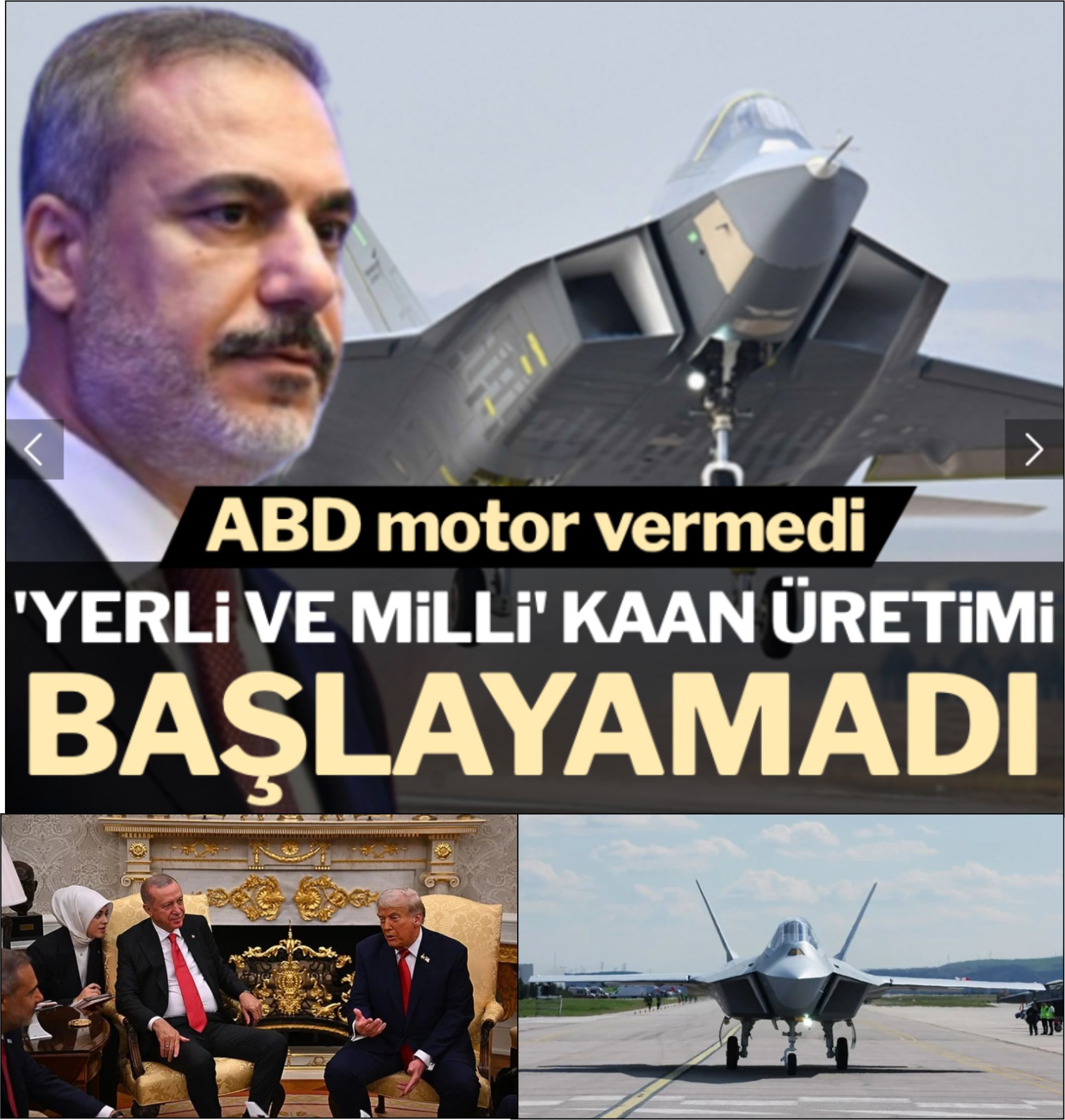 Dışişleri Bakanı Hakan Fidan, Türkiye'nin yerli imkanlar ile ürettiği 5. nesil savaş uçağı KAAN'a tedarik edilecek motorların lisanslarının ABD tarafından durdurulduğunu açıkladı. Fidan, söz konusu motorların teslimatı için kongreden onay beklenildiğini belirterek "Lisansların çıkarılıp motorların gelmesi lazım ki KAAN'ların üretimi başlayabilsin" ifadelerini kullandı.