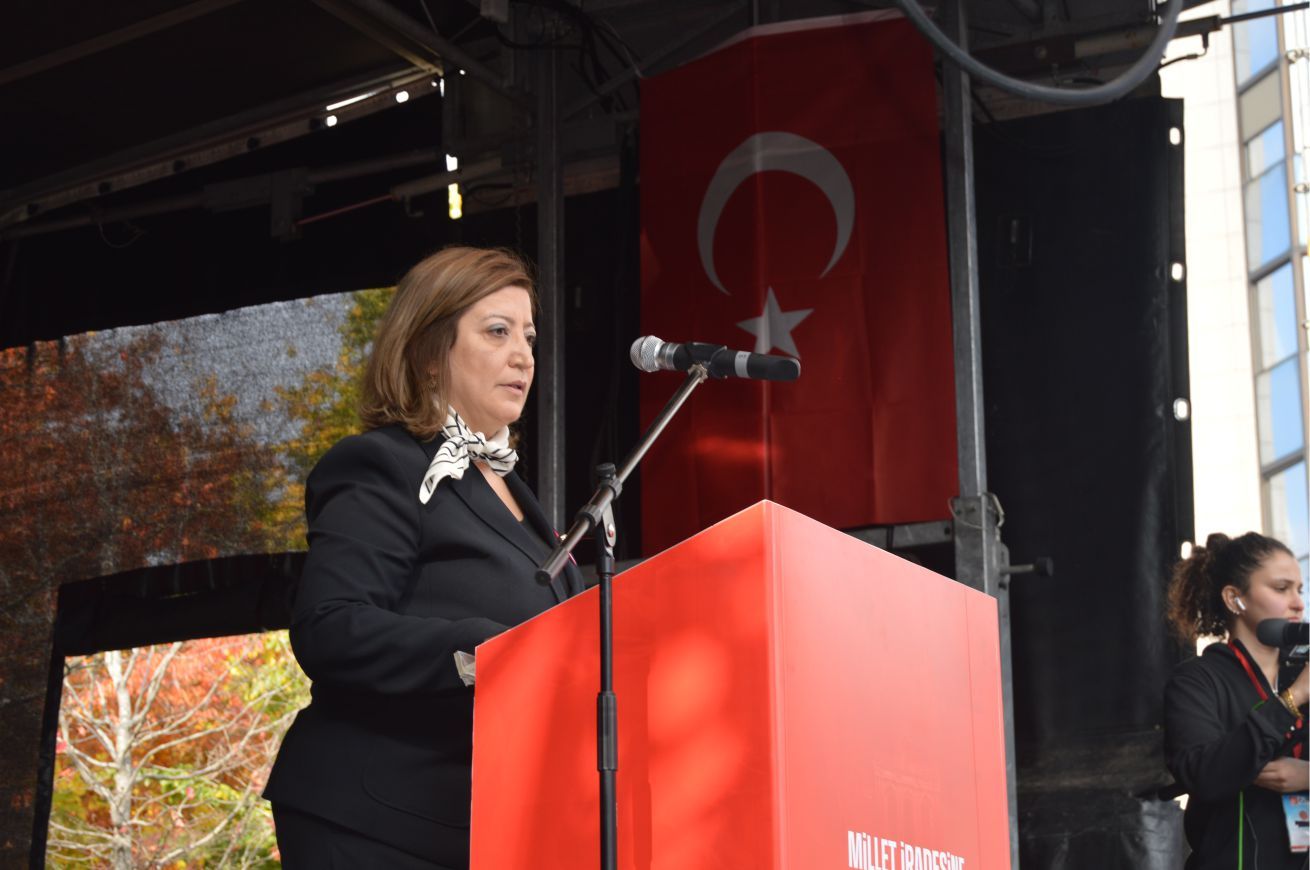 Hasreti bitireceğiz, güzelim memleketimin güzel insanlarıyla burada da orada da omuz omuza, kol kola yepyeni bir geleceği hep birlikte inşa edeceğiz. Biz Brüksel’e şikayet etmeye de kavga etmeye de değil; dayanışmaya, moral bulmaya, güç almaya, güç vermeye geliriz. Bundan sonra da Avrupa’nın her yerinde sizlerle birlikte olacağız, meydanlara sığmayıp taşıyacağız. Yarınları birlikte kuracağız. Güzel memleketimin güzel insanları, hepinizi saygıyla selamlıyorum. İyi ki varsınız. Buraya Avrupa’daki birliklerimizin değerli başkanlarını davet ediyorum. Değerli yoldaşlarımızı davet ediyorum. Burada Avrupa Konseyi’nden gelen, Avrupa Parlamentosu’ndan gelen kardeş partilerden gelen temsilcilerimizi, misafirlerimizi ve Avrupa’daki birliklerimizin değerli başkanlarını buraya davet ediyorum. Ve güzel memleketimize bir selamımızı hep beraber yolluyoruz, hep beraber gönderiyoruz.”