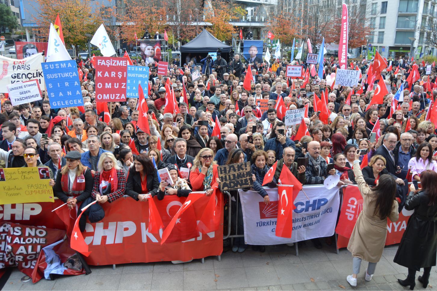 CHP, görevinden uzaklaştırılan İstanbul Büyükşehir Belediye Başkanı Ekrem İmamoğlu'nun tutuklanmasının ardından başlattığı "Millet İradesine Sahip Çıkıyor" mitinglerini ilk kez yurt dışında düzenledi.